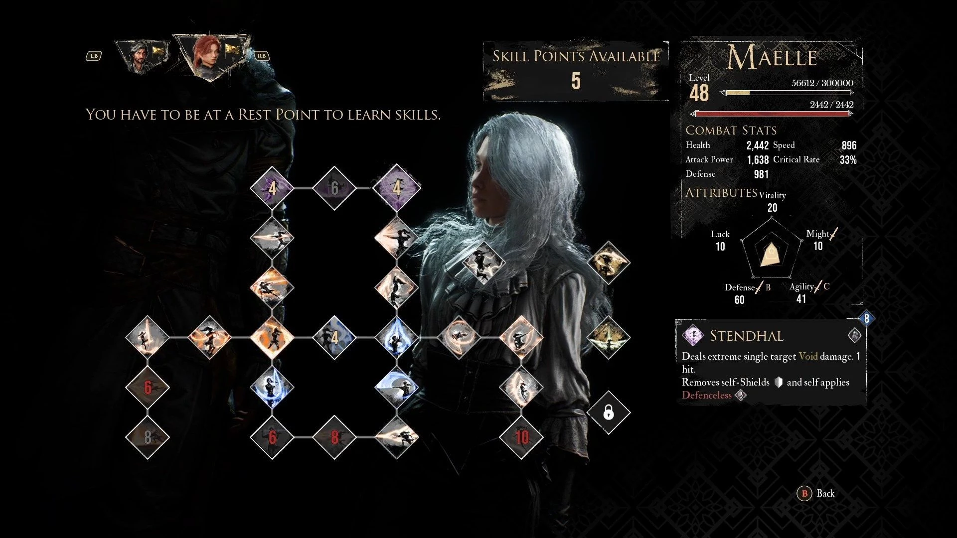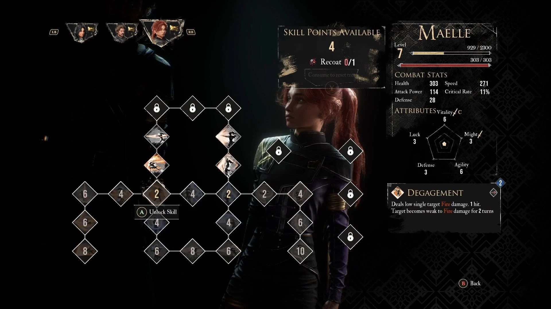 В самом начале игры вы могли заметить, что у некоторых героев есть заблокированные скиллы. Если способности Густава откроются довольно быстро во втором акте (хотя использовать их будет Версо), то скиллы Маэль придется подождать до третьего акта, после победы над Маларкой.