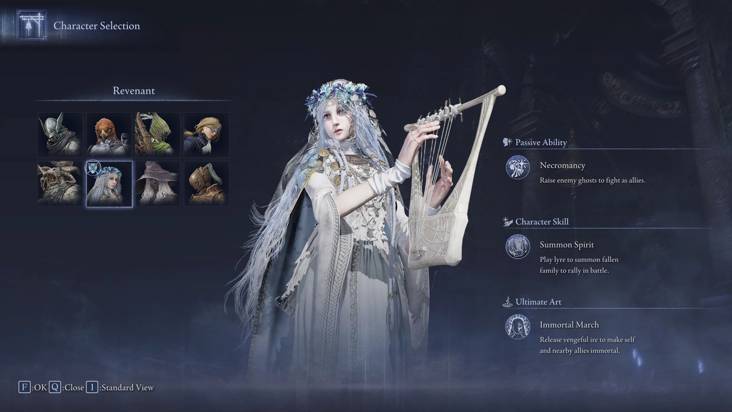 Она уникальна тем, что она полагается на постоянную ротацию призываемых духов, а не на навыки для определённого типа боя. У неё есть когти, которые имеют повышенный шанс на критические удары, но это оружие ближнего боя. Ещё у Призрака есть лечащее заклинание, но у неё нет способа восстанавливать FP, так что используй его с умом.