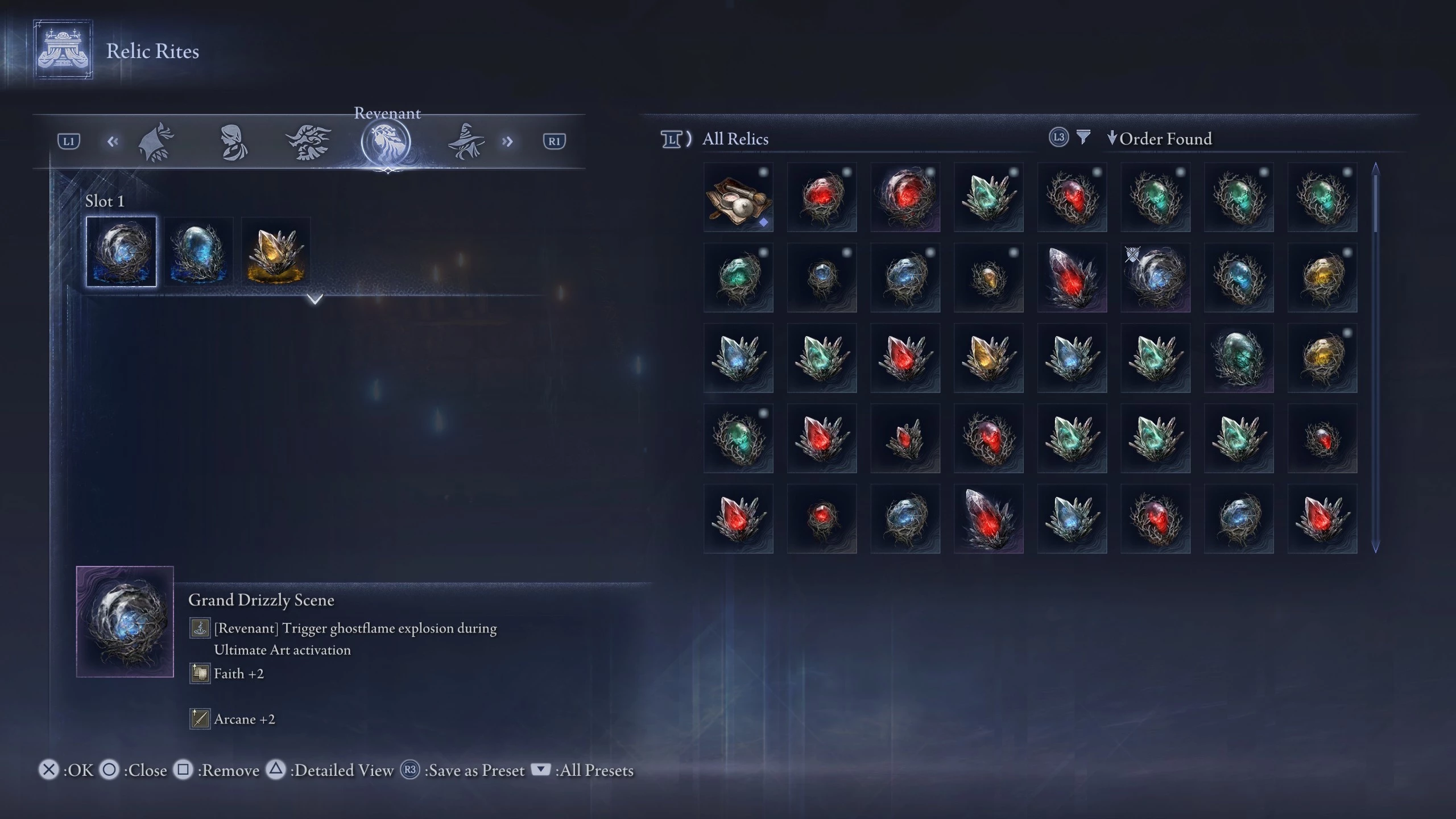 Две самые полезные реликвии гарантированно выпадают: одна у торговца в Крепости Круглого стола, а вторая — после завершения первого Воспоминания Ревенанта.