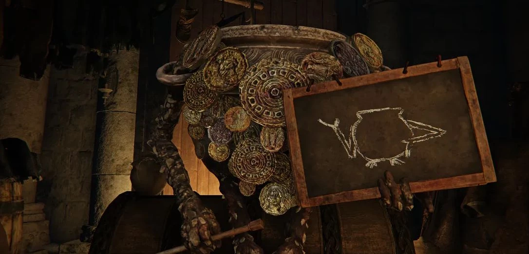 В западной части Крепости на сундуке восседает оживший кувшин. Он является единственным торговцем в этом месте. У него вы можете обменивать собранный мрак на кубки и сосуды (необходимые для ритуалов реликвий), жесты, болтливые черепа и различные реликвии с фиксированными свойствами. Его ассортимент увеличивается по мере прохождения игры. Здесь также можно приобрести неограниченное количество живописных камней — случайных реликвий, которые создаются при покупке. Это оптимальное место для траты излишков мрака, если вы стремитесь пополнить свою коллекцию артефактов в кратчайшие сроки.