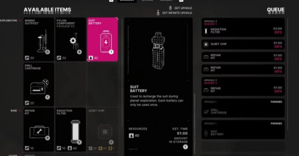 В игре предусмотрена система автоматического крафта, позволяющая установить минимальный запас необходимых предметов. При дефиците игра будет автоматически производить их, экономя время и обеспечивая быстрое пополнение запасов.
