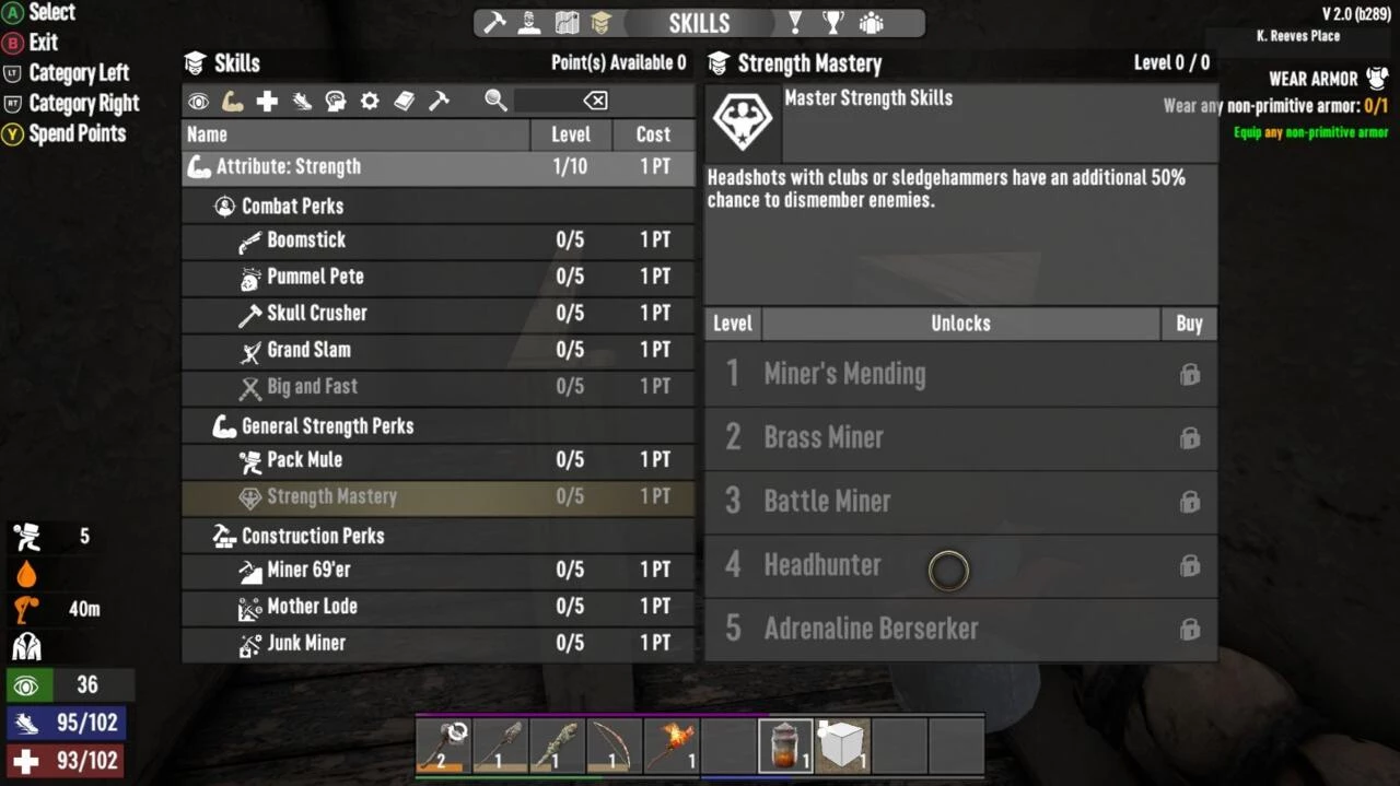 - Сила: Дает шанс получить латунь при сборе руды и усиливает использование кувалд.