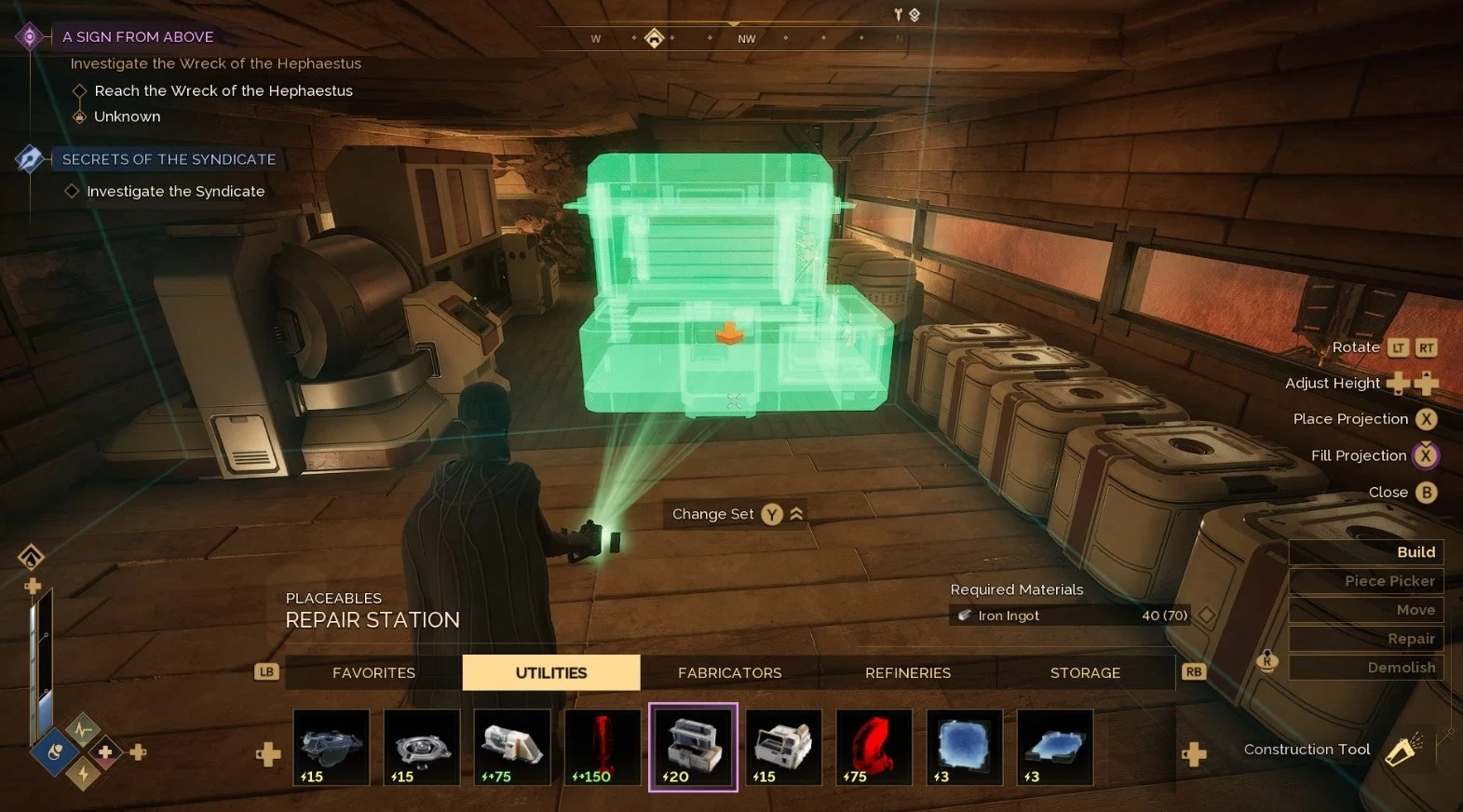 Предметы, такие как оружие, инструменты и снаряжение, требуют наличия специальной перерабатывающей станции, которая называется Ремонтная станция. Чертеж для её постройки станет доступен вскоре после прибытия в Вермиллиевую впадину.