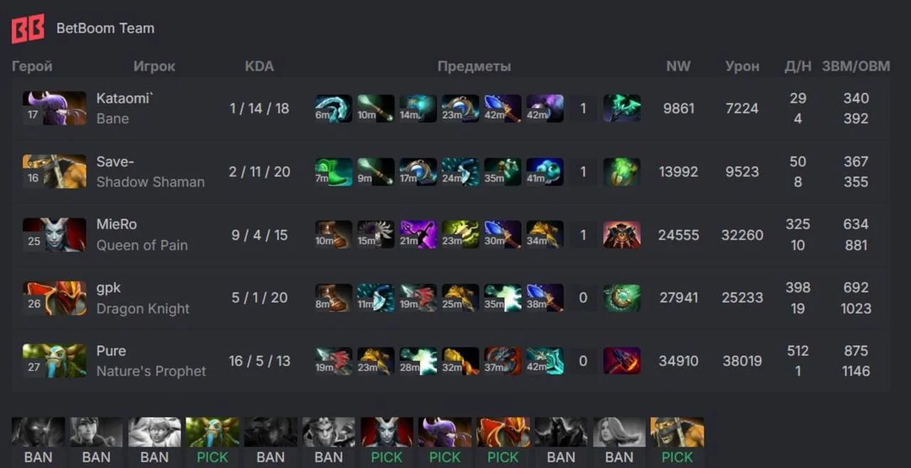 В захватывающем поединке BetBoom Team вырвала победу у Team Liquid в финале нижней сетки PGL Wallachia Season 5 по Dota 2. Итоговый счет 2:0 обеспечил команде под предводительством Ивана "Pure~" Москаленко пропуск в гранд-финал турнира.