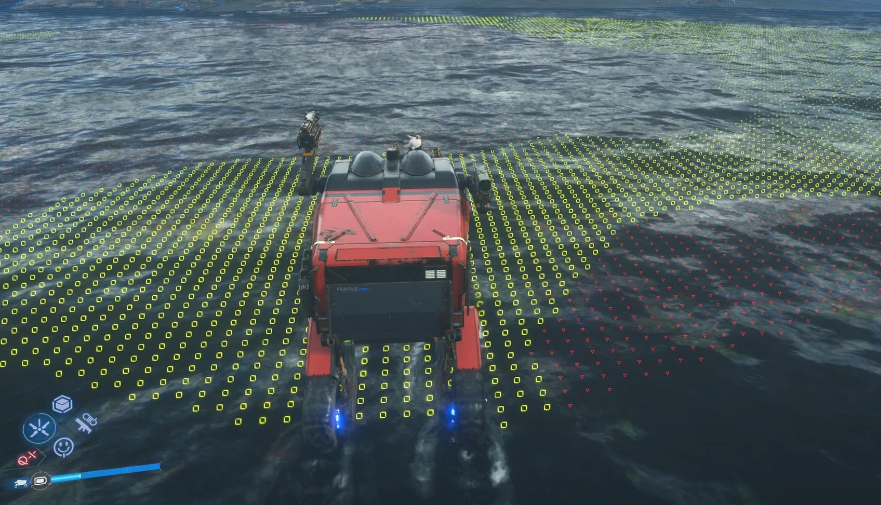 Однако, при попытке добраться до Изобретателя, вы столкнетесь с препятствием: смоляным морем, в котором Сэм увязает. Решение – найти верное направление, используя ордадек. Сканируйте береговую линию до тех пор, пока не обнаружите «тропу» с меньшей глубиной, выделенную желтым цветом. Используйте транспорт, чтобы преодолеть дистанцию до острова; «тропа» достаточно широка для грузового внедорожника.