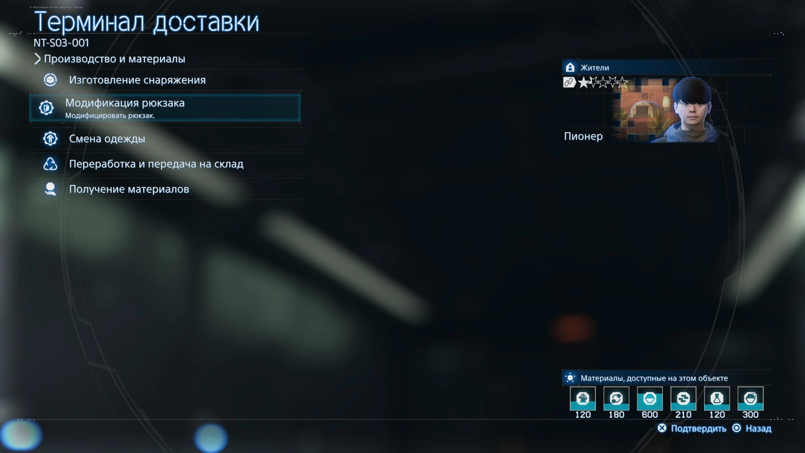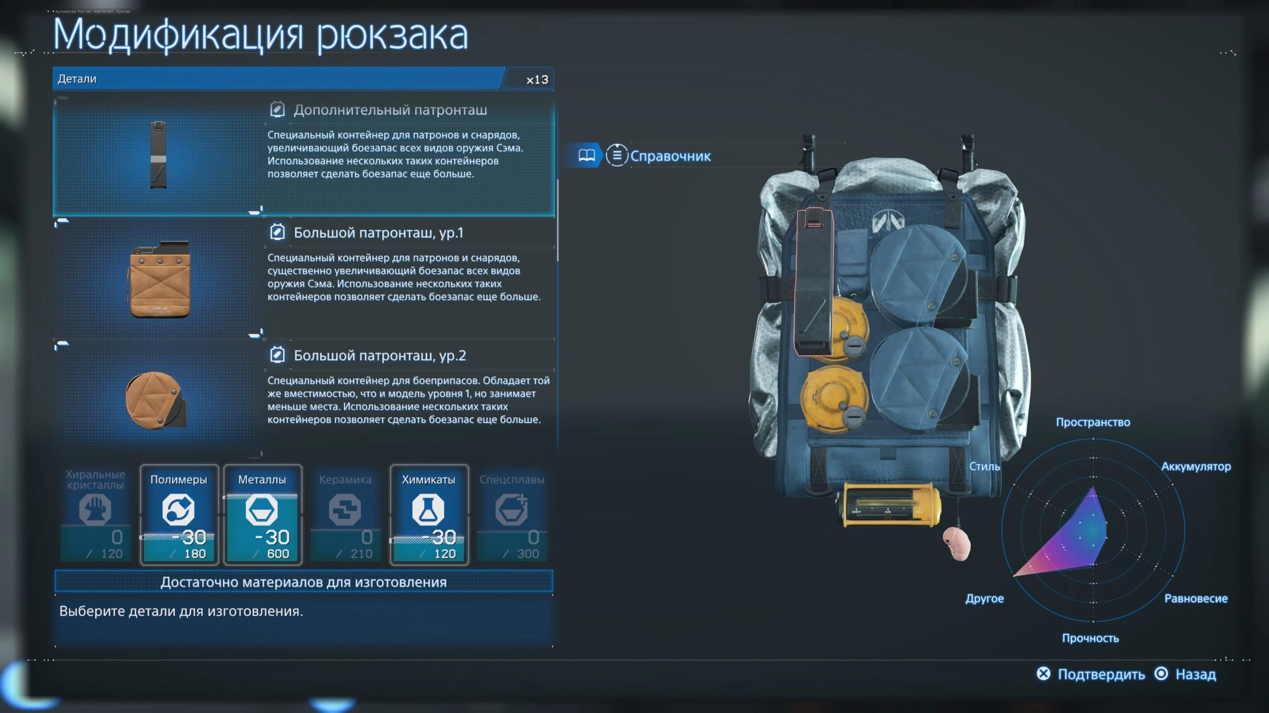 - Выберите раздел «Производство и материалы», затем «Модификация рюкзака».