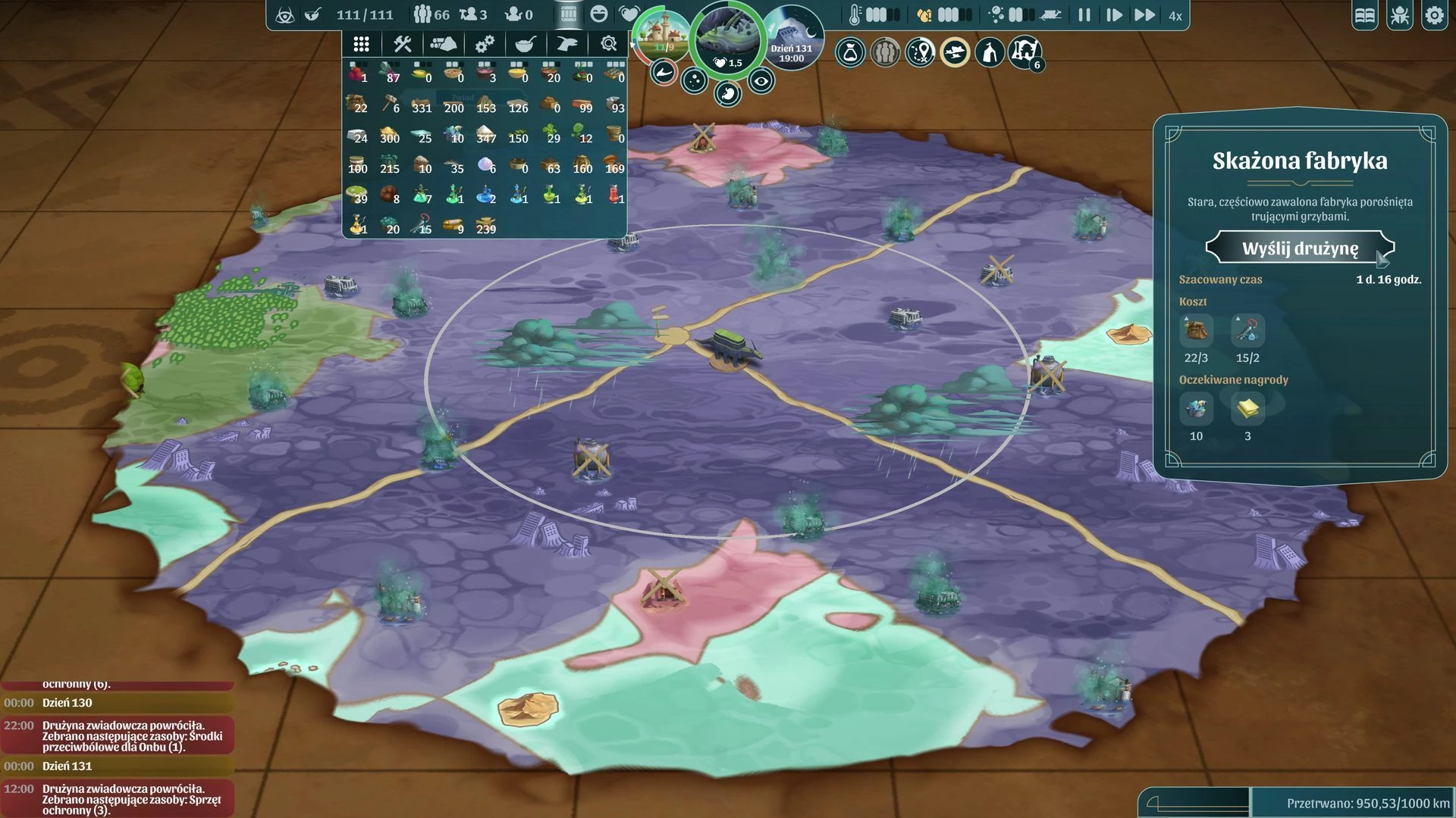 Главная особенность The Wandering Village – постоянное движение при сохранении поселения. В As Far as the Eye тоже был кочевой образ жизни, но мы несли все имущество на спине животного и строили временные сооружения. Здесь же мы не покидаем Онбу, и деревня остается постоянной. Как в Frostpunk, мы отправляем разведчиков в разные места.
