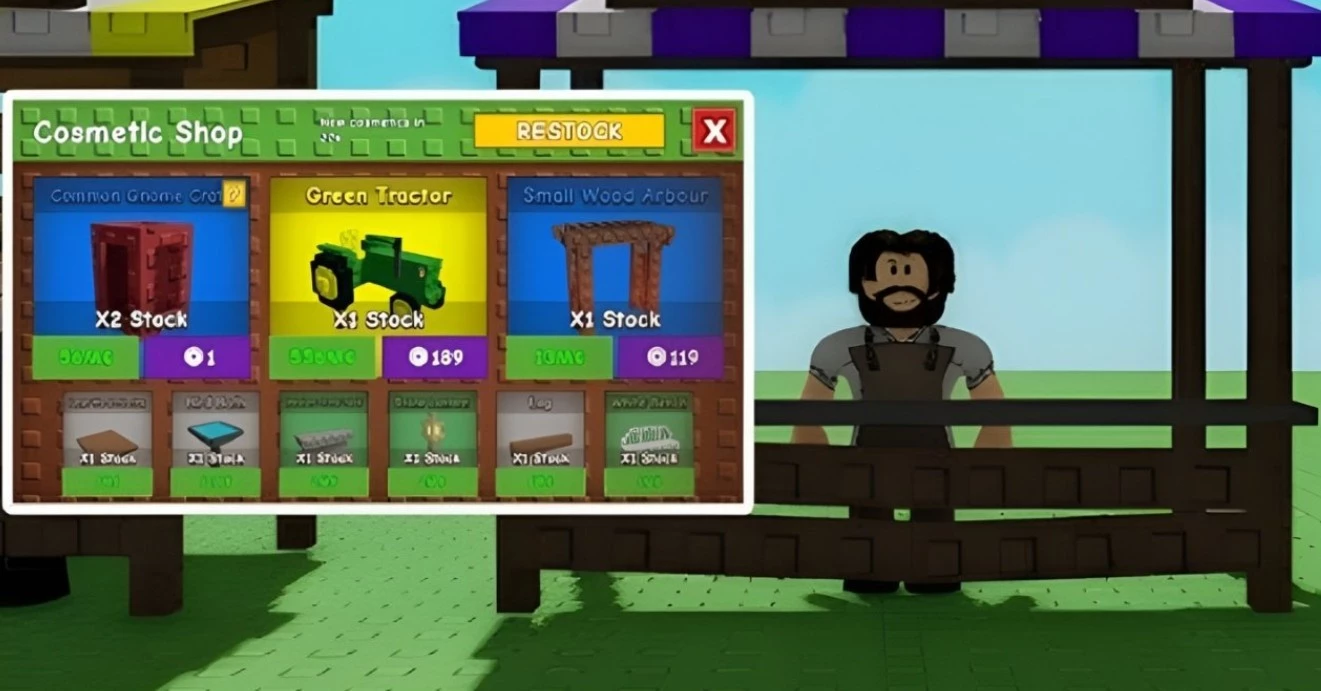 Как упоминалось ранее, в Grow a Garden теперь есть косметический магазин, где можно потратить шекели или робуксы на декоративные элементы для улучшения внешнего вида сада. Ассортимент включает в себя отдельные украшения и контейнеры со случайным содержимым, из которых с определенной вероятностью выпадает один из возможных предметов. Все косметические предметы делятся на пять уровней редкости: мифические, легендарные, редкие, необычные и обычные.