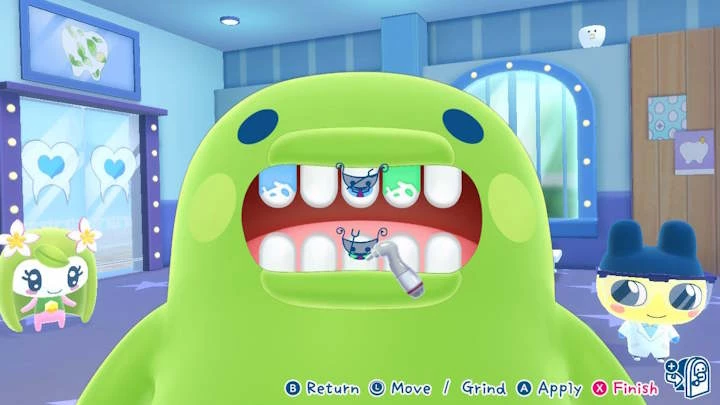 Стоматологическая клиника, знакомая мне по предыдущим частям, - лучшая мини-игра для меня, и я легко могу представить, как увлекательно она может быть для детей. Мы сверлим, пломбируем, чистим зубы правильной пастой и избавляемся от кариеса, который в игре представлен в виде маленьких существ. Этих существ нужно ловить пинцетом, вытаскивать из зуба и запирать в клетку - сказать, что это творческий подход, было бы преуменьшением.