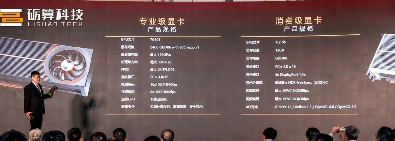 Китайская компания Lisuan Technology представила свою первую игровую видеокарту 7G106, построенную на базе собственного графического процессора TrueGPU. Во время презентации была показана работа новинки в Black Myth: Wukong в 4K с высокими настройками, обеспечивая комфортную частоту кадров.