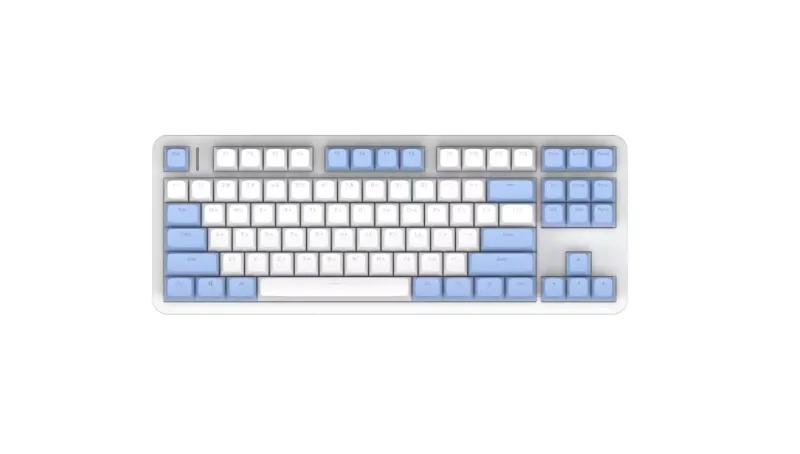 Alumix TKL SE Cloudy, как и следует из названия, выполнена в бело-голубой цветовой гамме, напоминающей летнее небо с облаками. Дизайн получился легким и воздушным, он отлично дополнит любое рабочее пространство – от строгого до яркого. Дополняет внешний вид однотонная лунно-белая подсветка.