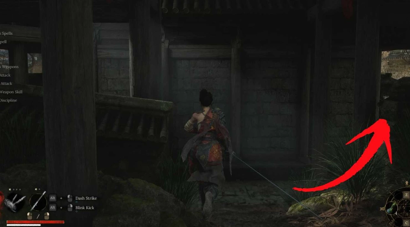 После первой встречи с Ву Ганом, поднимитесь от центрального святилища Храма Лайтцзен по ступеням во внутренний двор. Расправившись с двумя одержимыми монахами, двигайтесь вперед и обойдите центральную часть, чтобы найти вход внутрь.