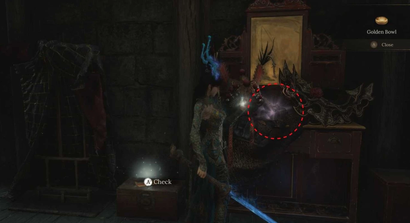 Справа, на небольшом алтаре, и находится Золотая Чаша. Рядом с алтарем вы найдете записку с указанием местоположения Ключа от Храма Лайтцзен, необходимого для дальнейшего прохождения.