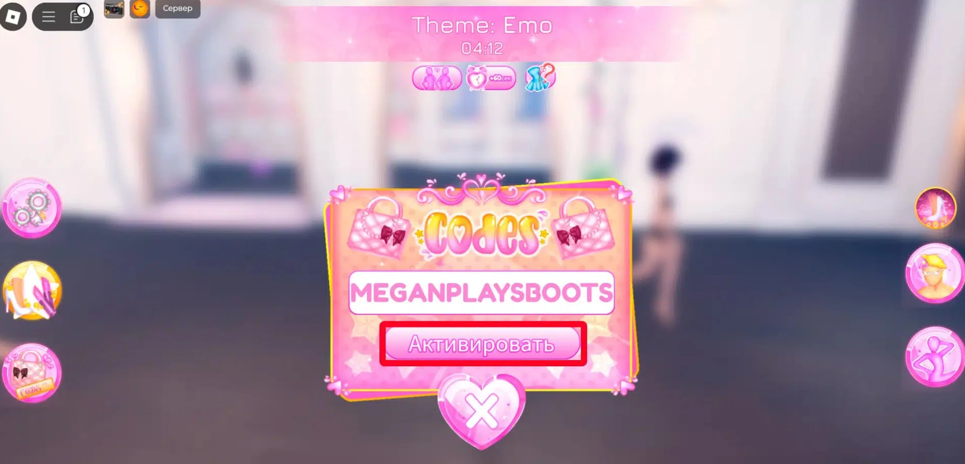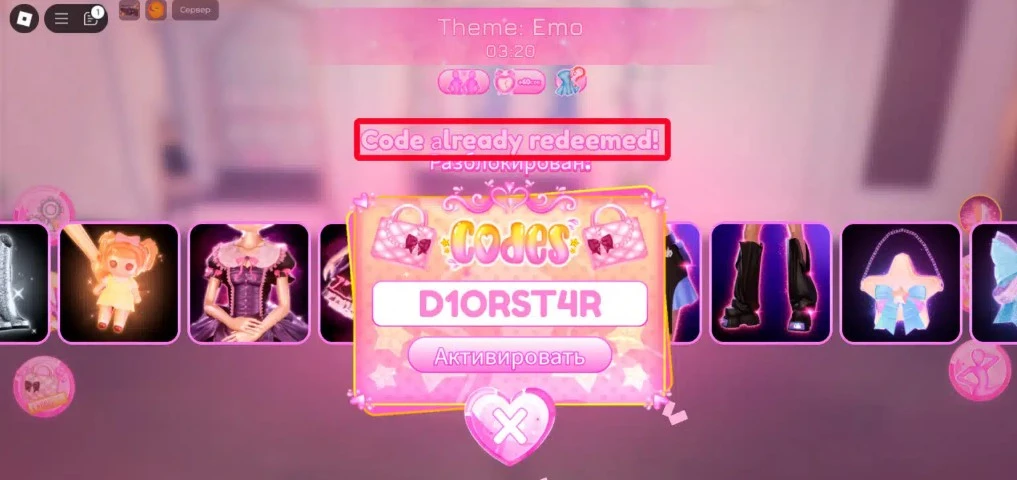 Получение призов за использование кодов активации в ROBLOX Dress To Impress