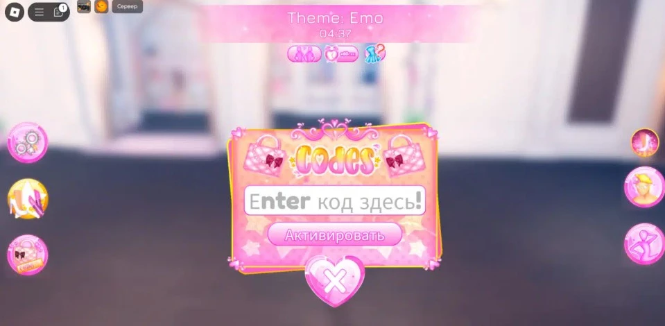 Запустите игру и, находясь в любом месте, найдите раздел для ввода промокода в Dress To Impress: