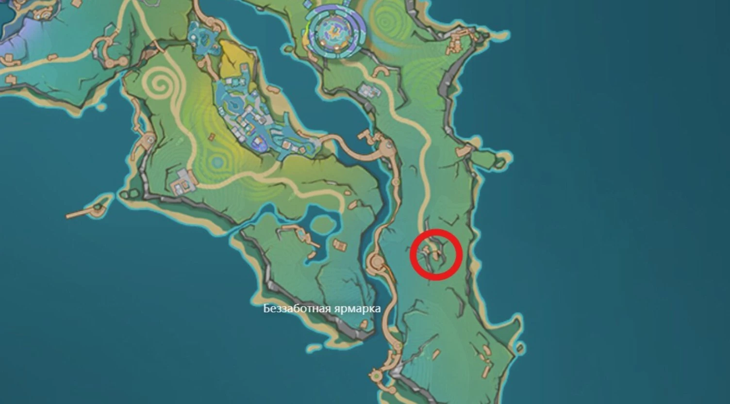 Интересно, что в пещеру можно попасть и другим путем. Если пойти на восток, на побережье вы обнаружите лагерь хиличурлов. После победы над ними вы увидите проход в скале - вам туда. Используйте карту, чтобы не заблудиться.