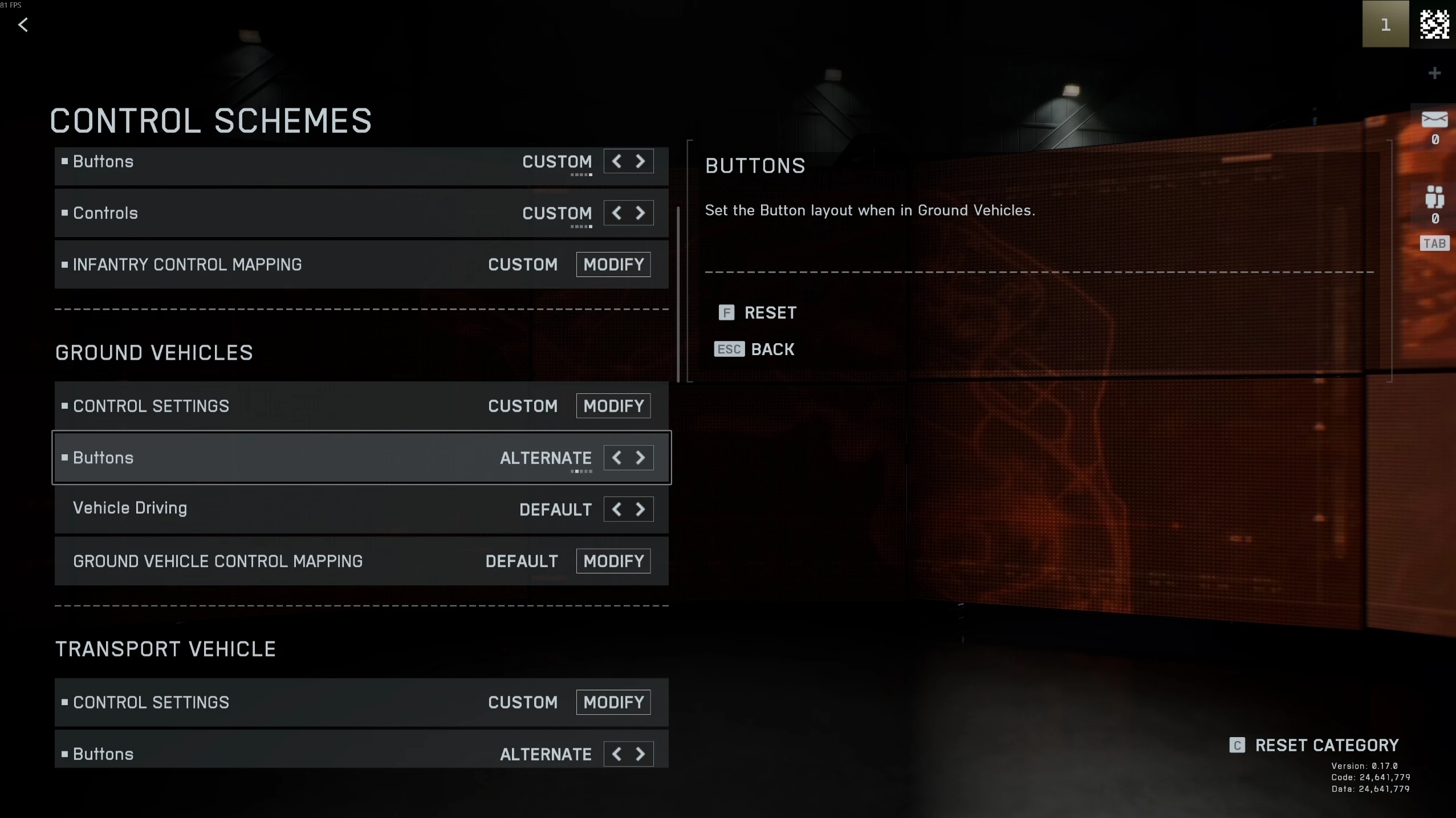 Вы также можете просмотреть все остальные разделы настроек управления (наземные транспортные средства, транспортные средства, воздушные суда и т. д.), но по умолчанию они в основном настроены на оптимальные параметры. Тем не менее, рекомендуется проверить их и внести коррективы в соответствии со своими предпочтениями.