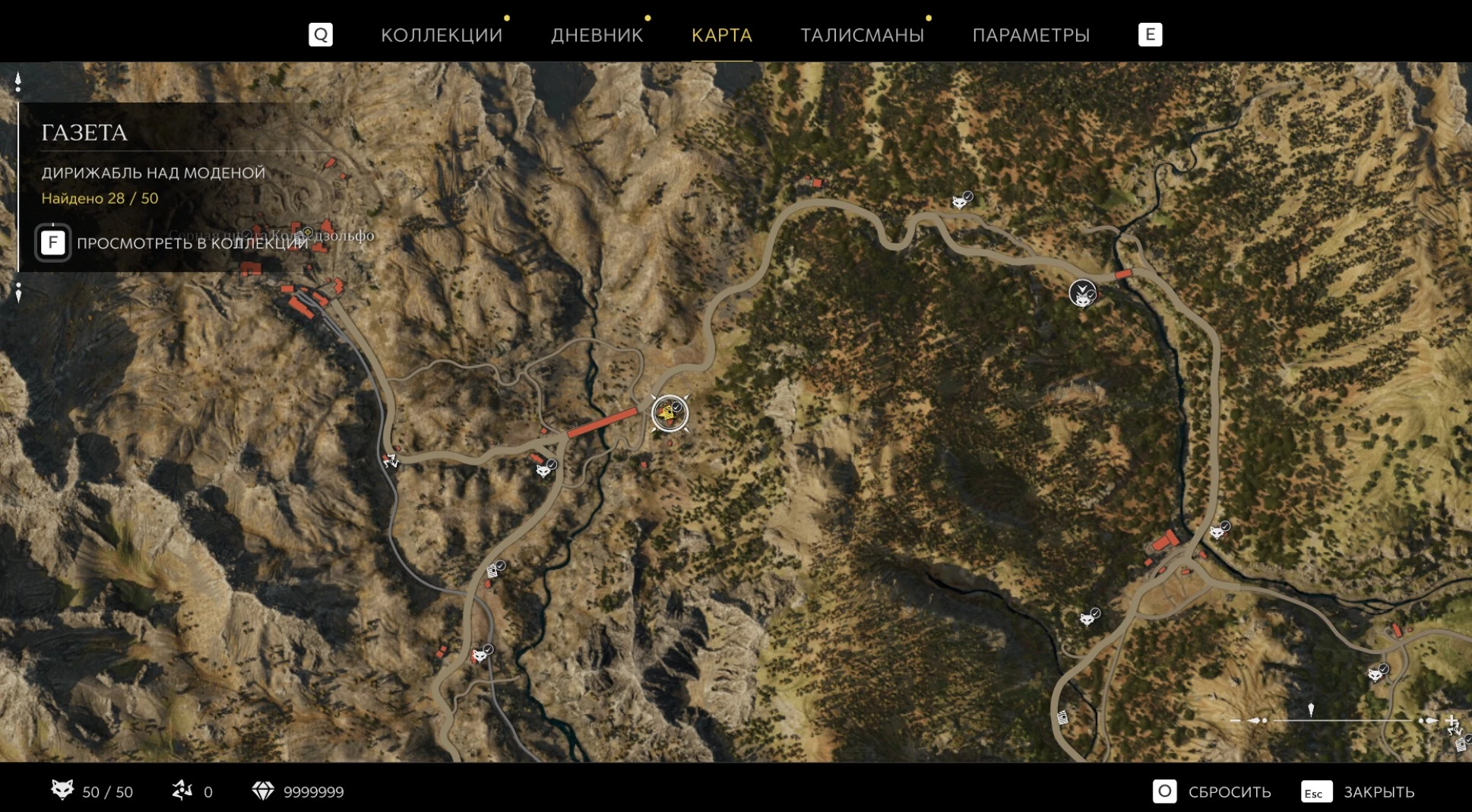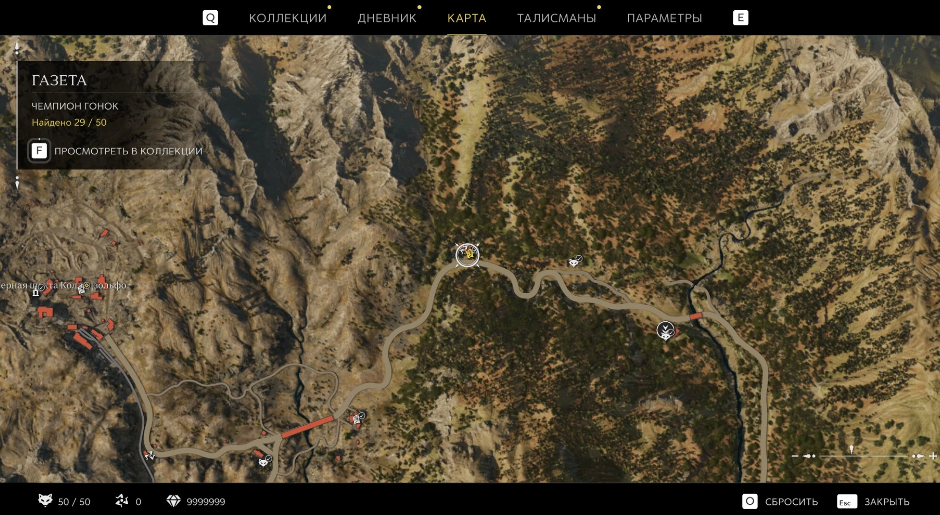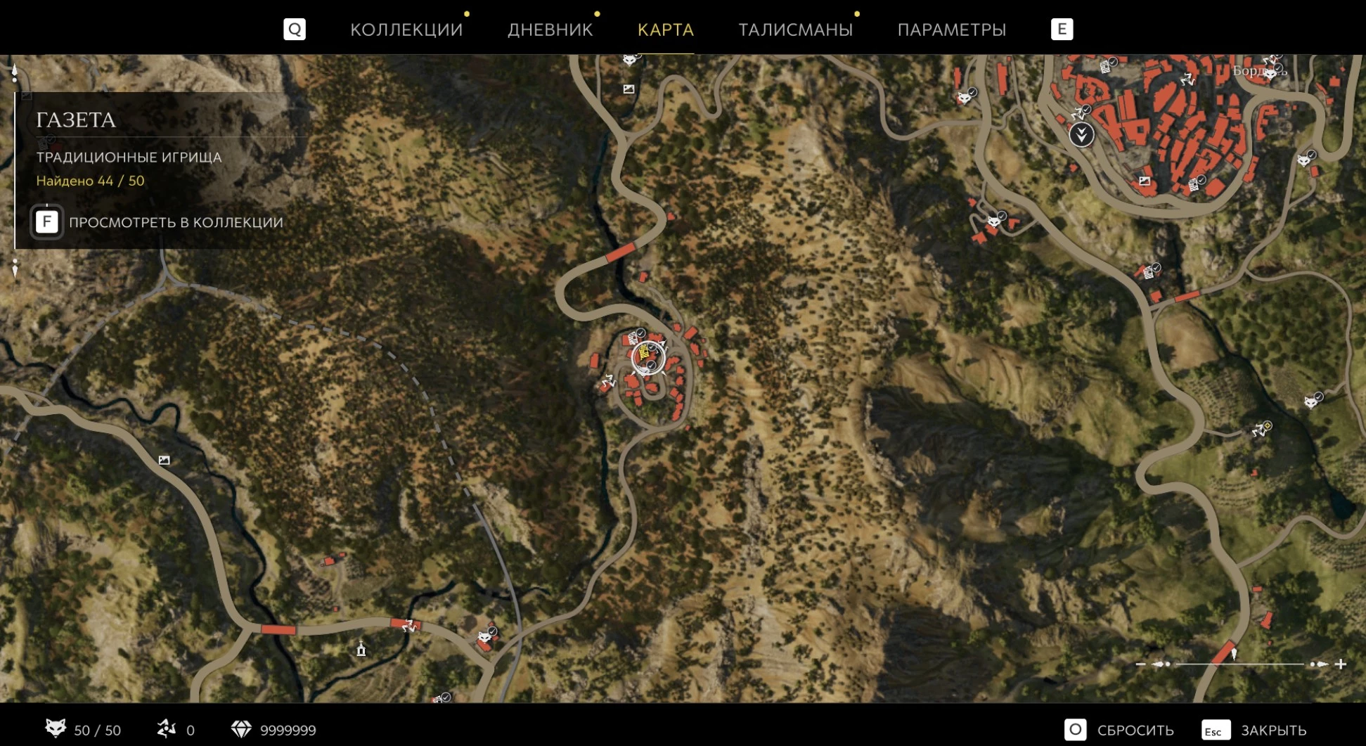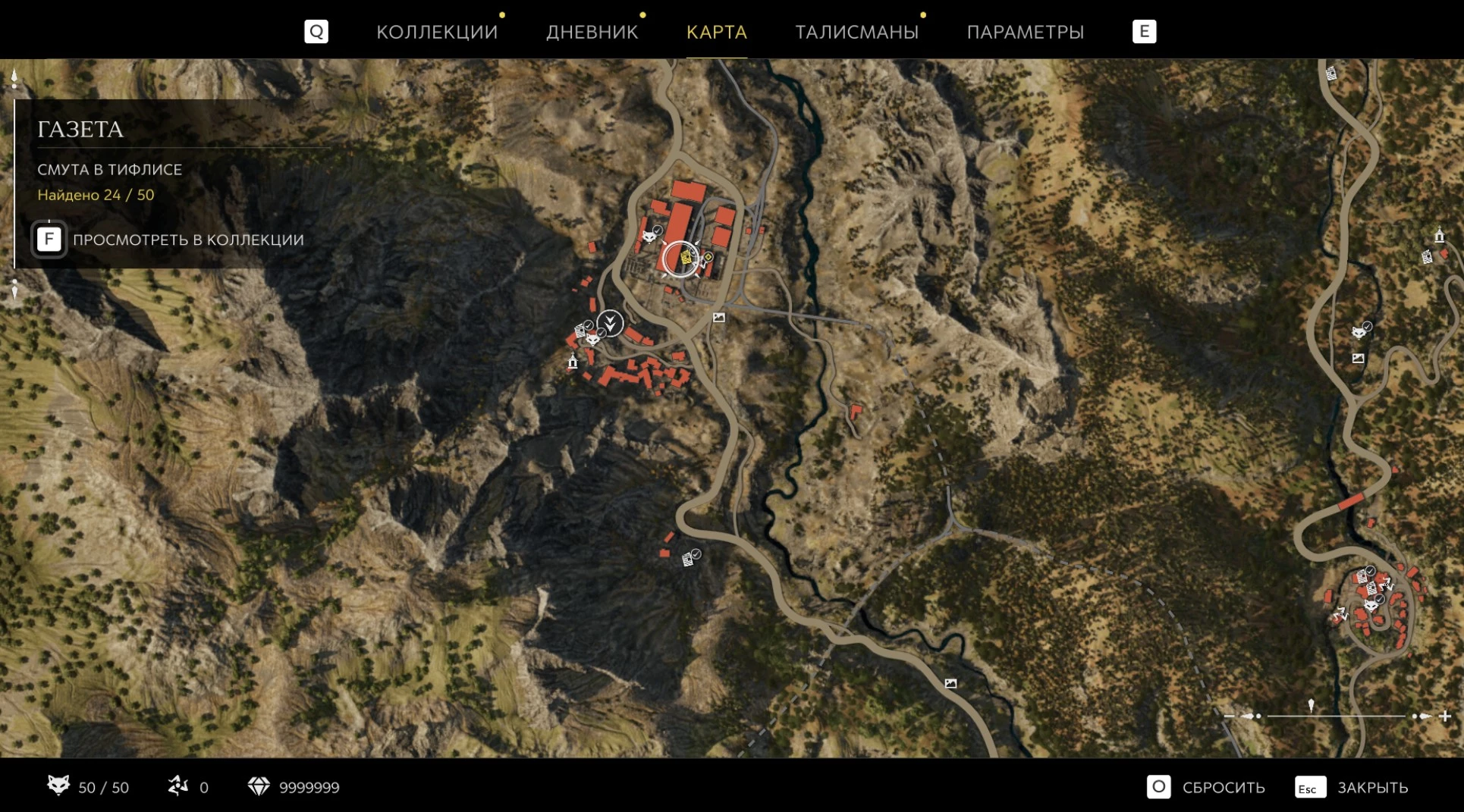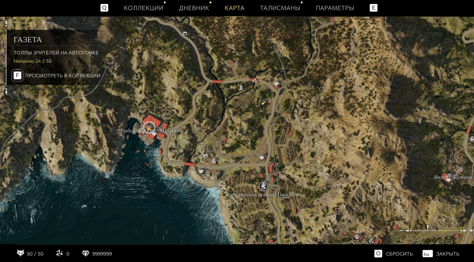 При приближении к коллекционному предмету на карте отображается его белая иконка. Если предмет уже найден, иконка на карте будет отмечена галочкой.