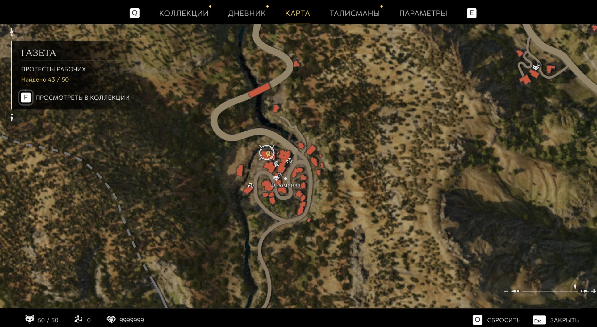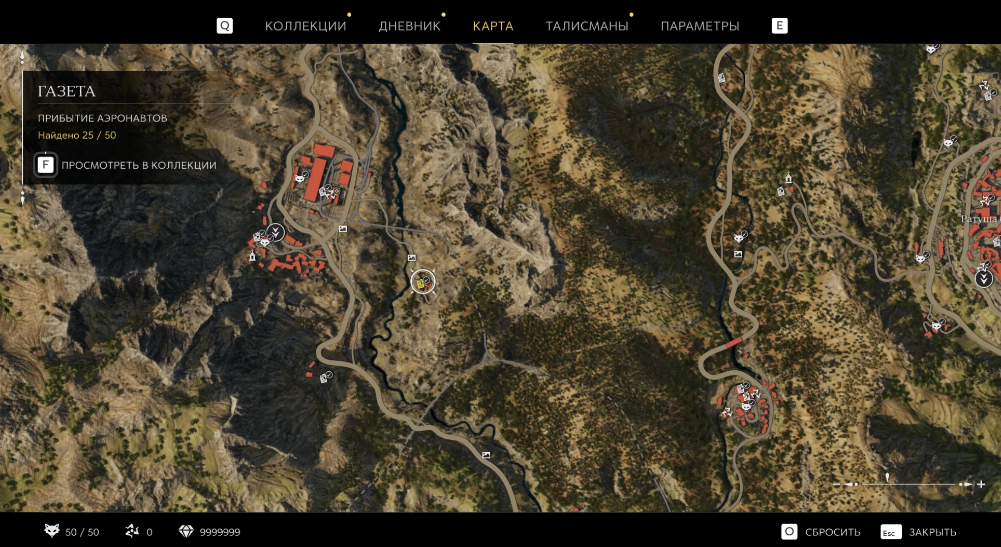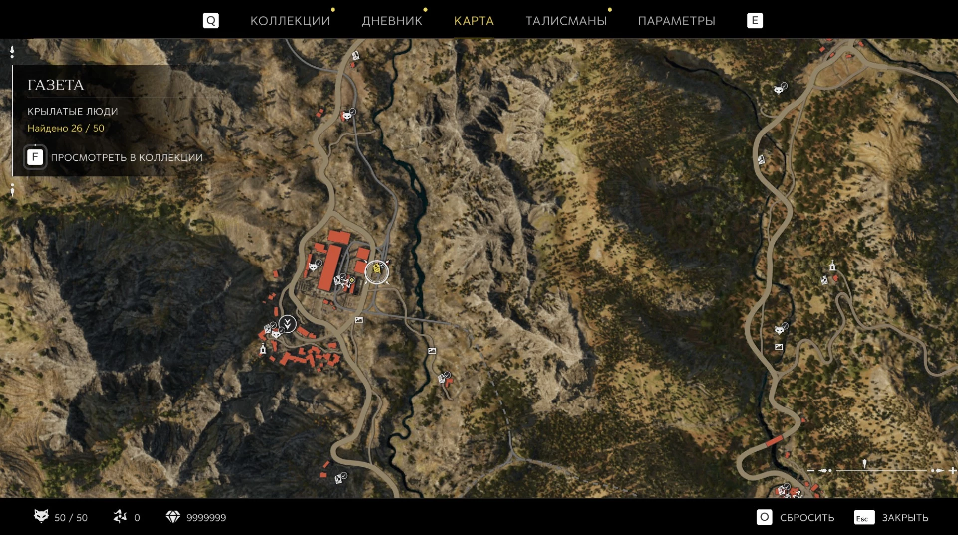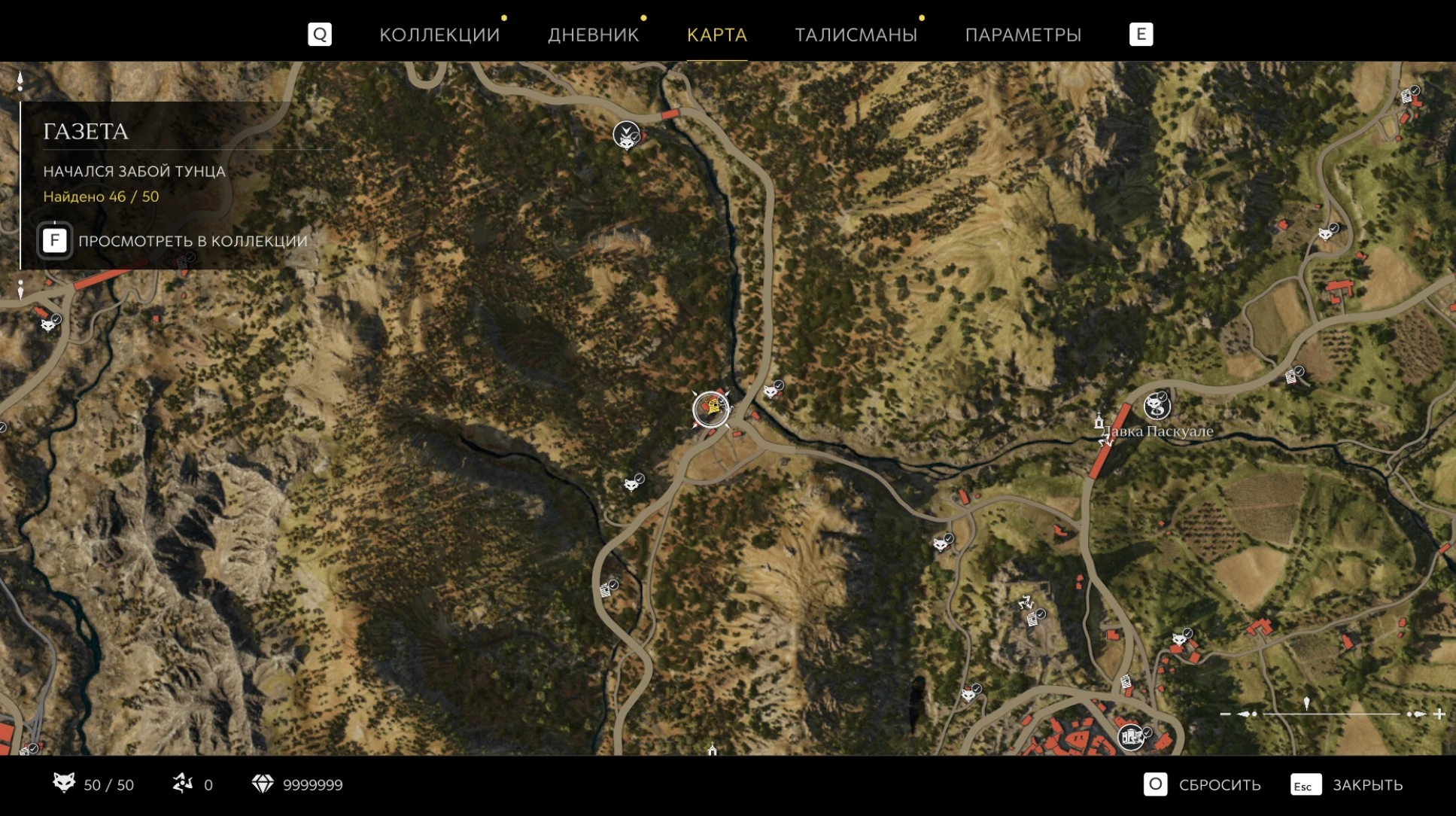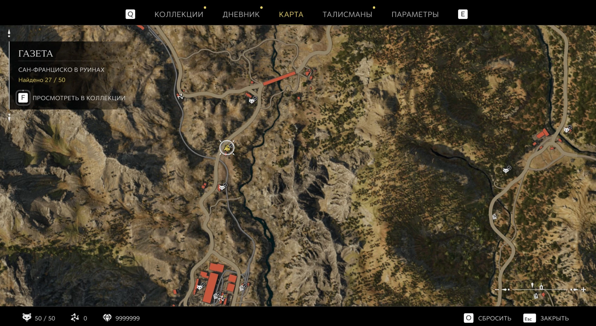 При приближении к коллекционному предмету на карте отображается его белая иконка. Если предмет уже найден, иконка на карте будет отмечена галочкой.