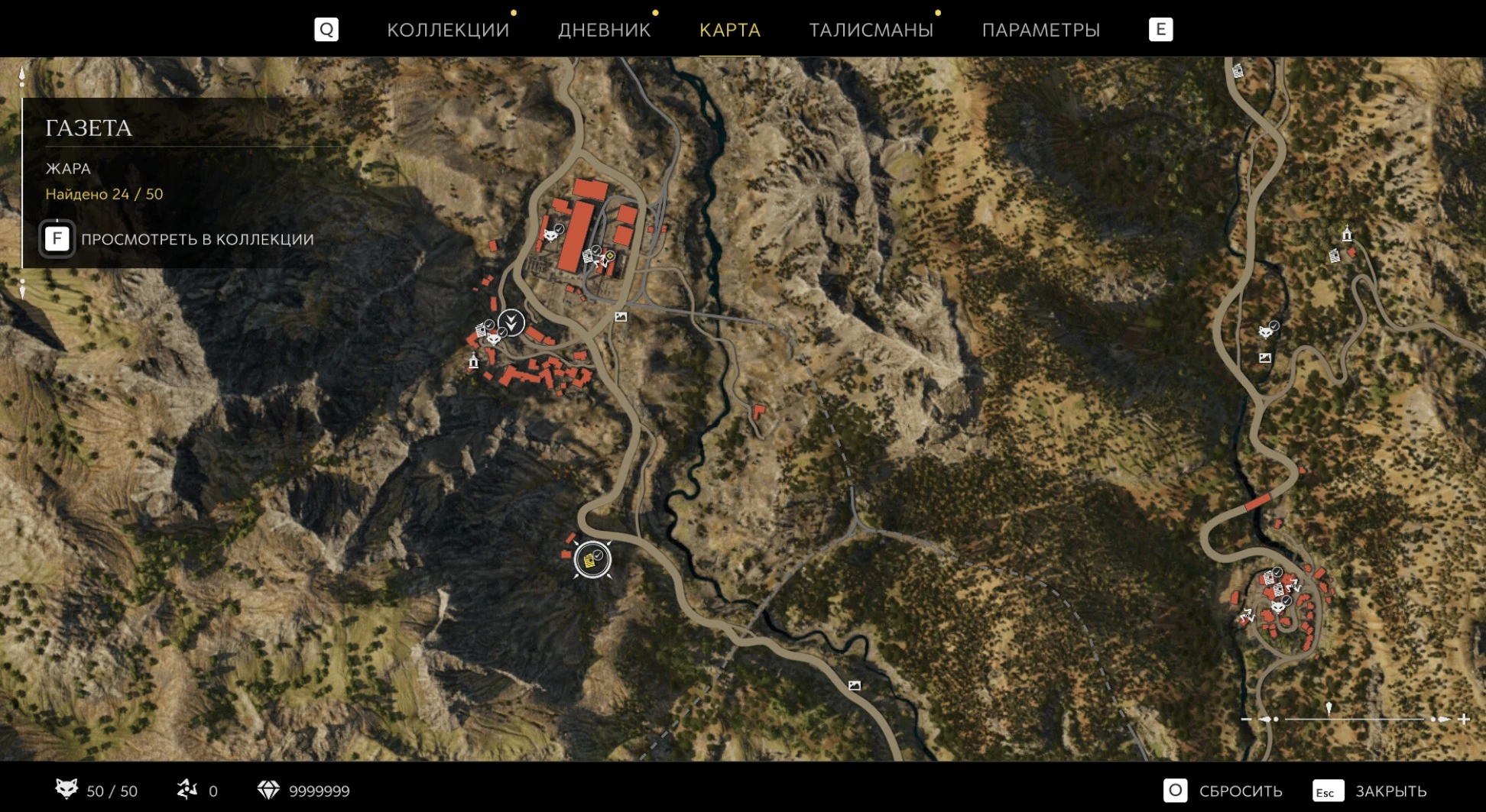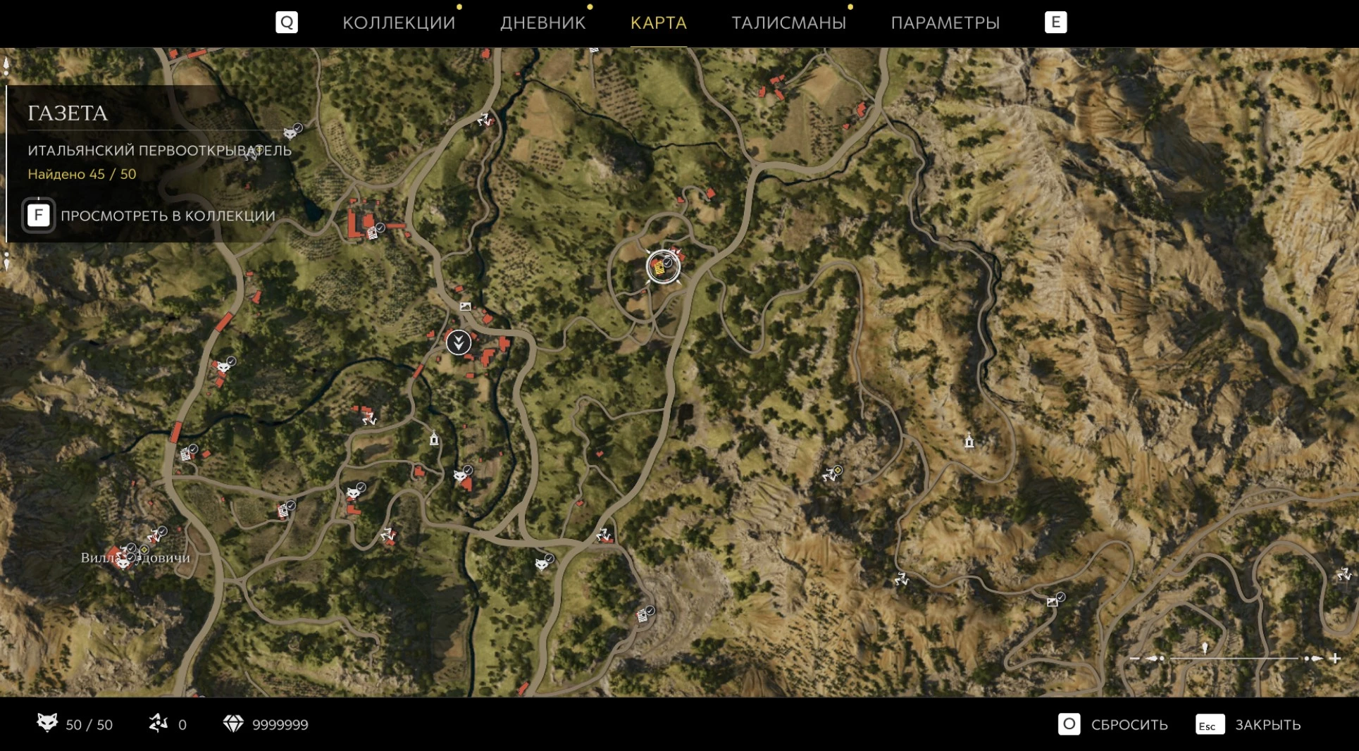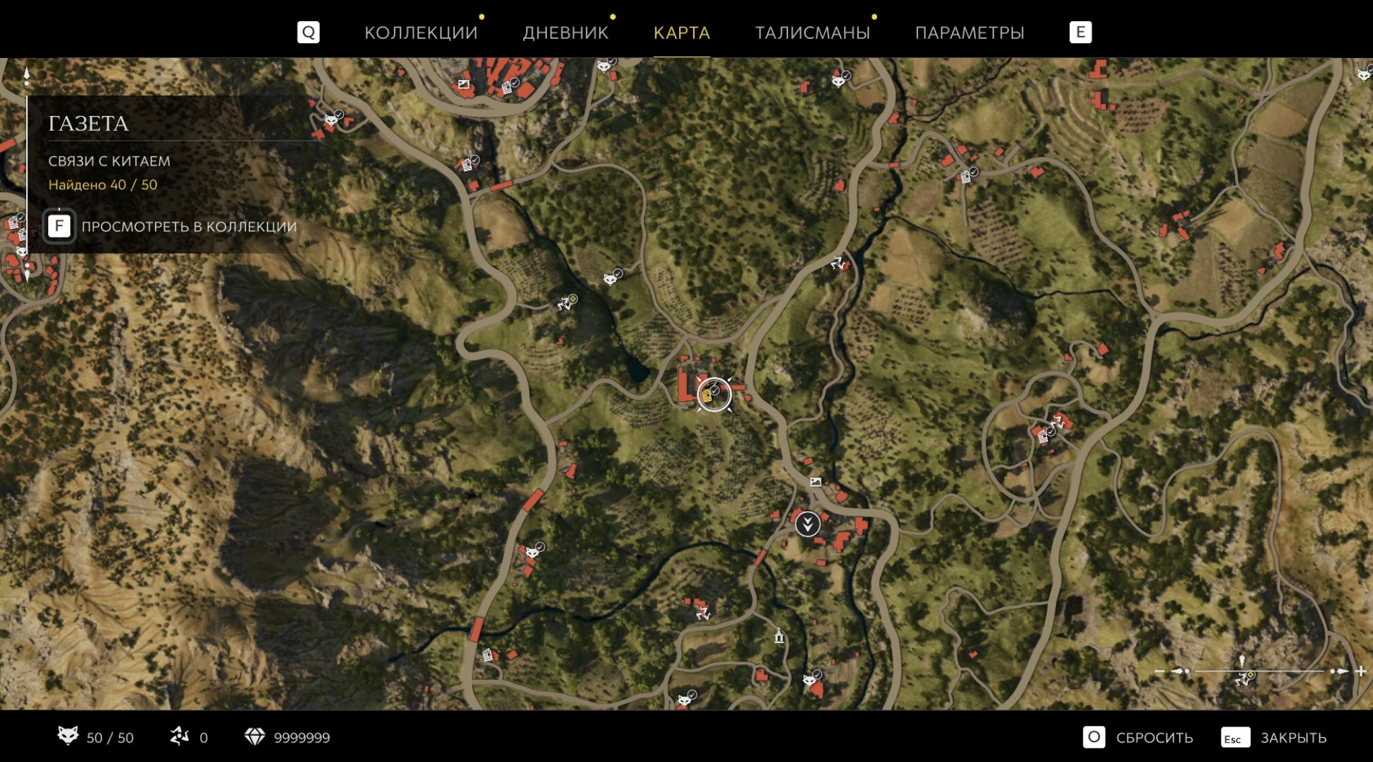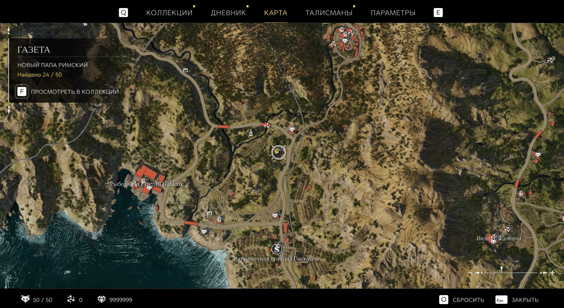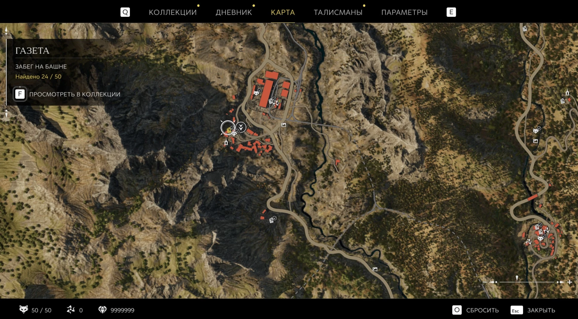 При приближении к коллекционному предмету на карте отображается его белая иконка. Если предмет уже найден, иконка на карте будет отмечена галочкой.
