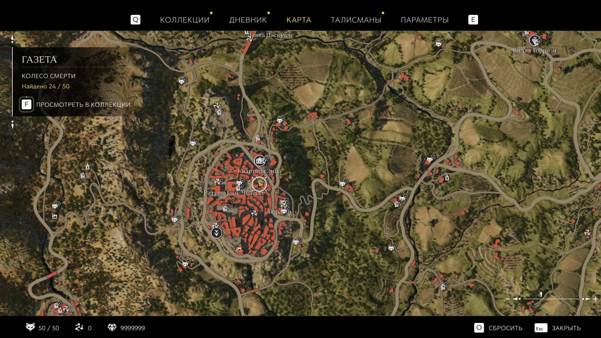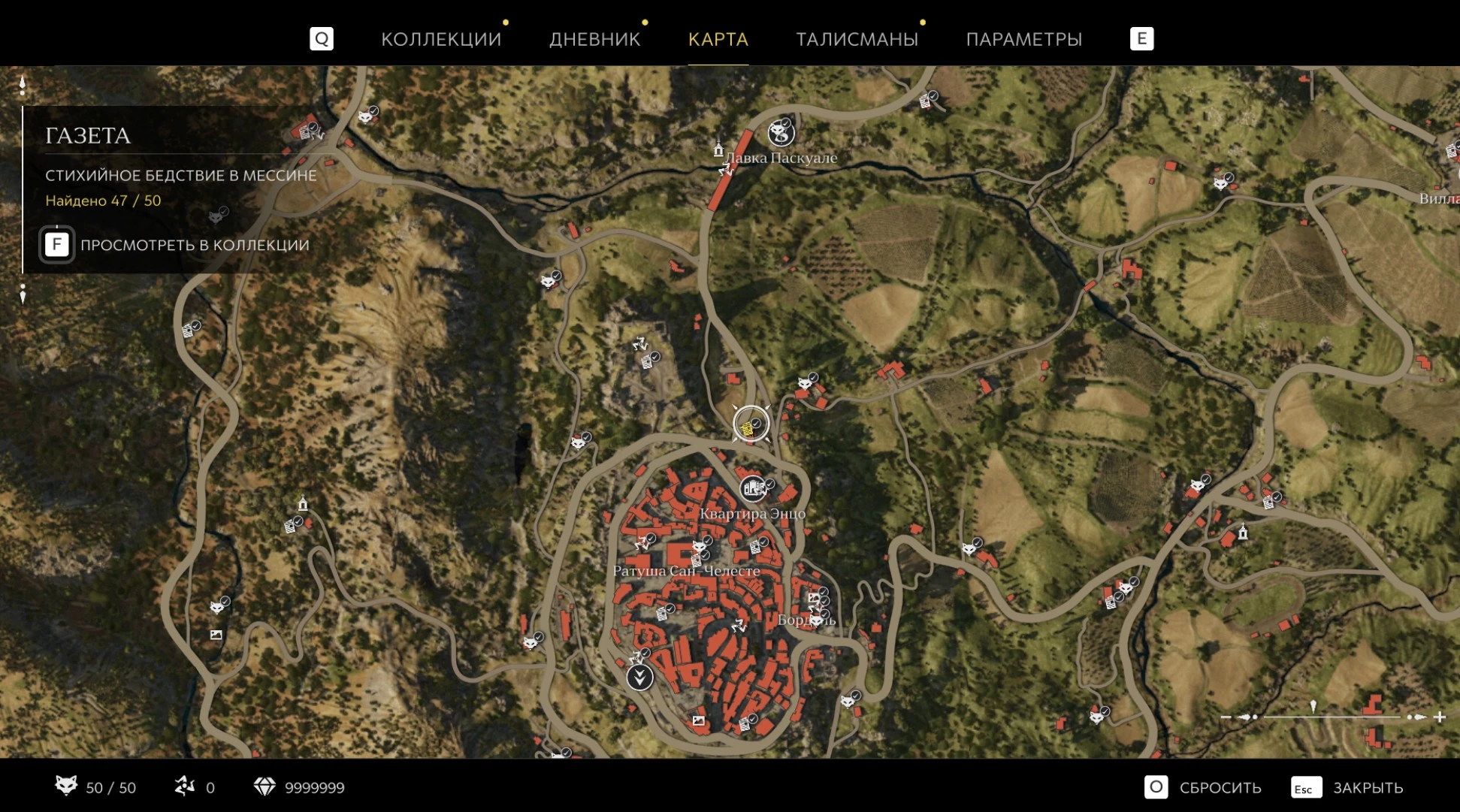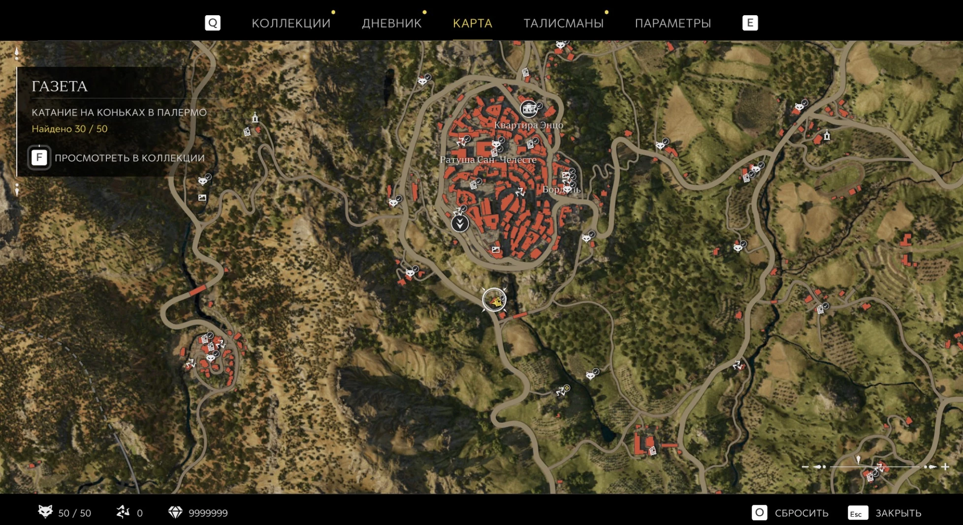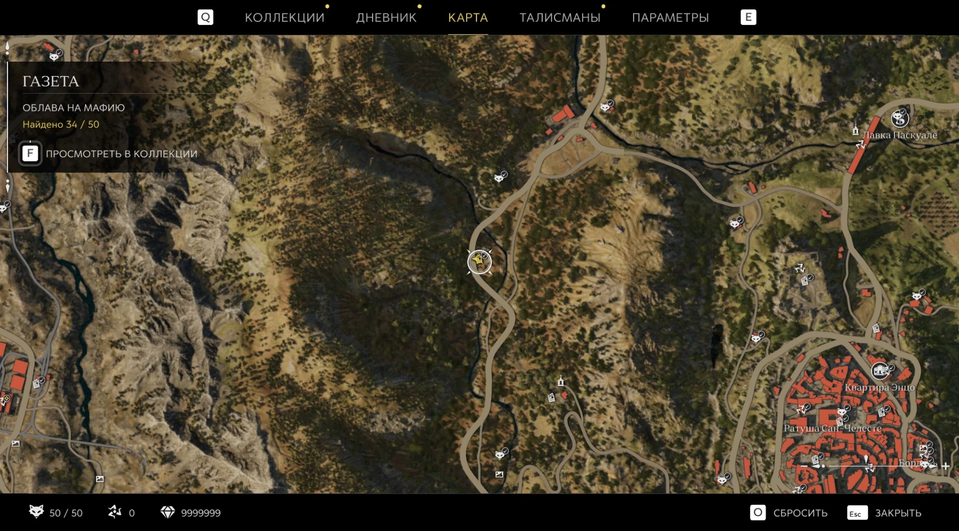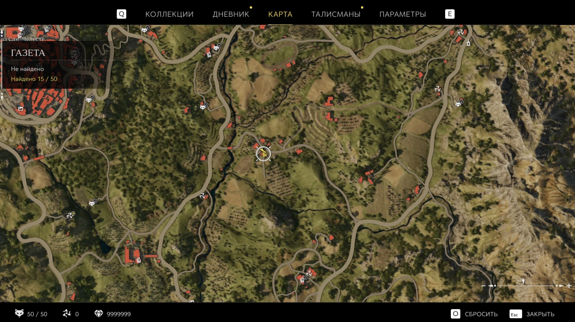 При приближении к коллекционному предмету на карте отображается его белая иконка. Если предмет уже найден, иконка на карте будет отмечена галочкой.