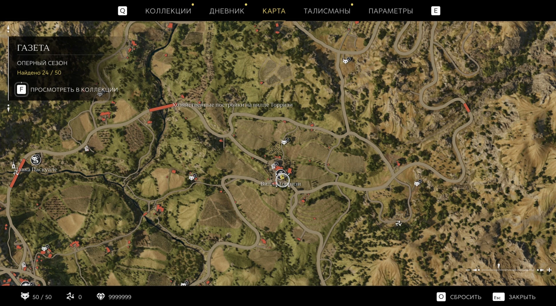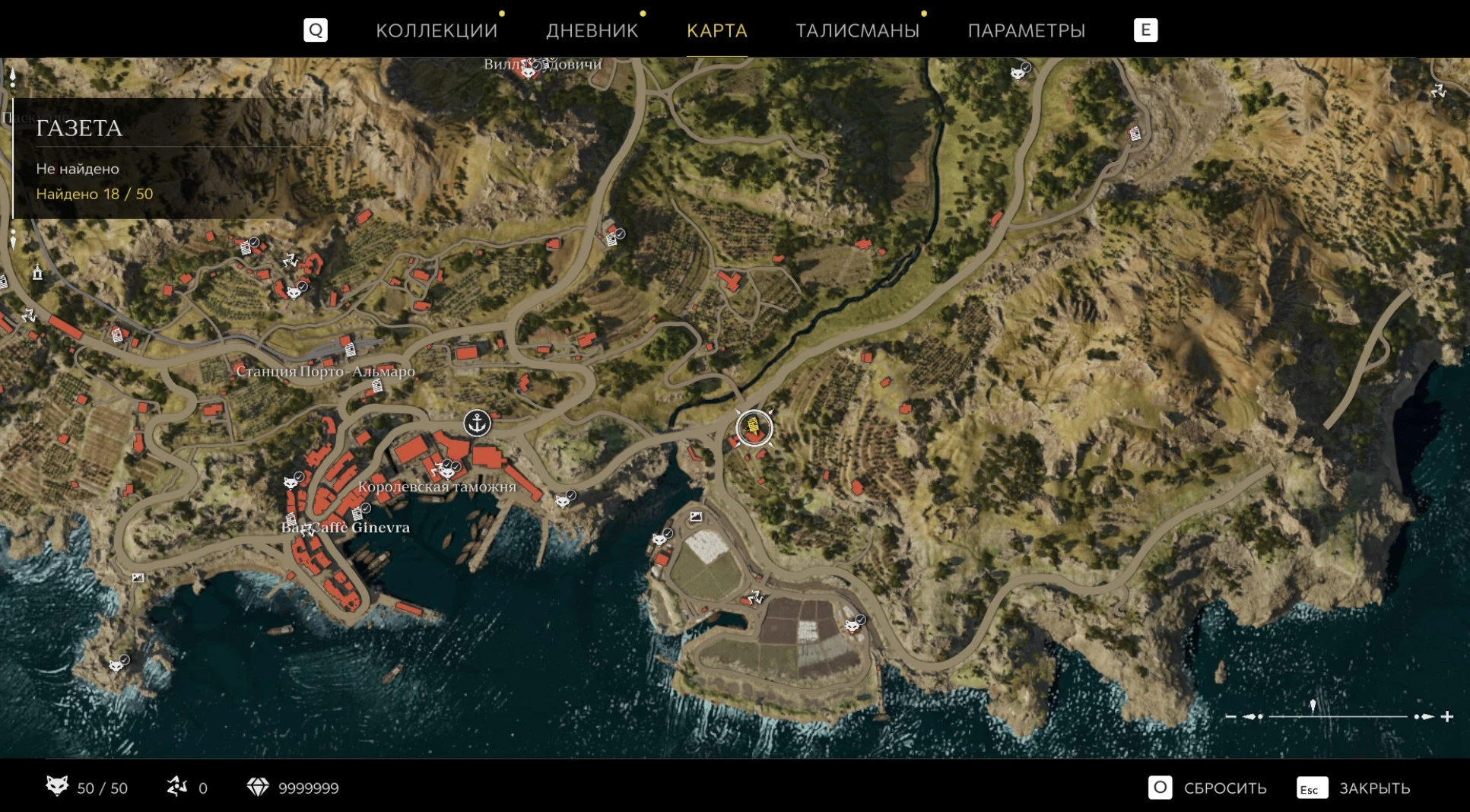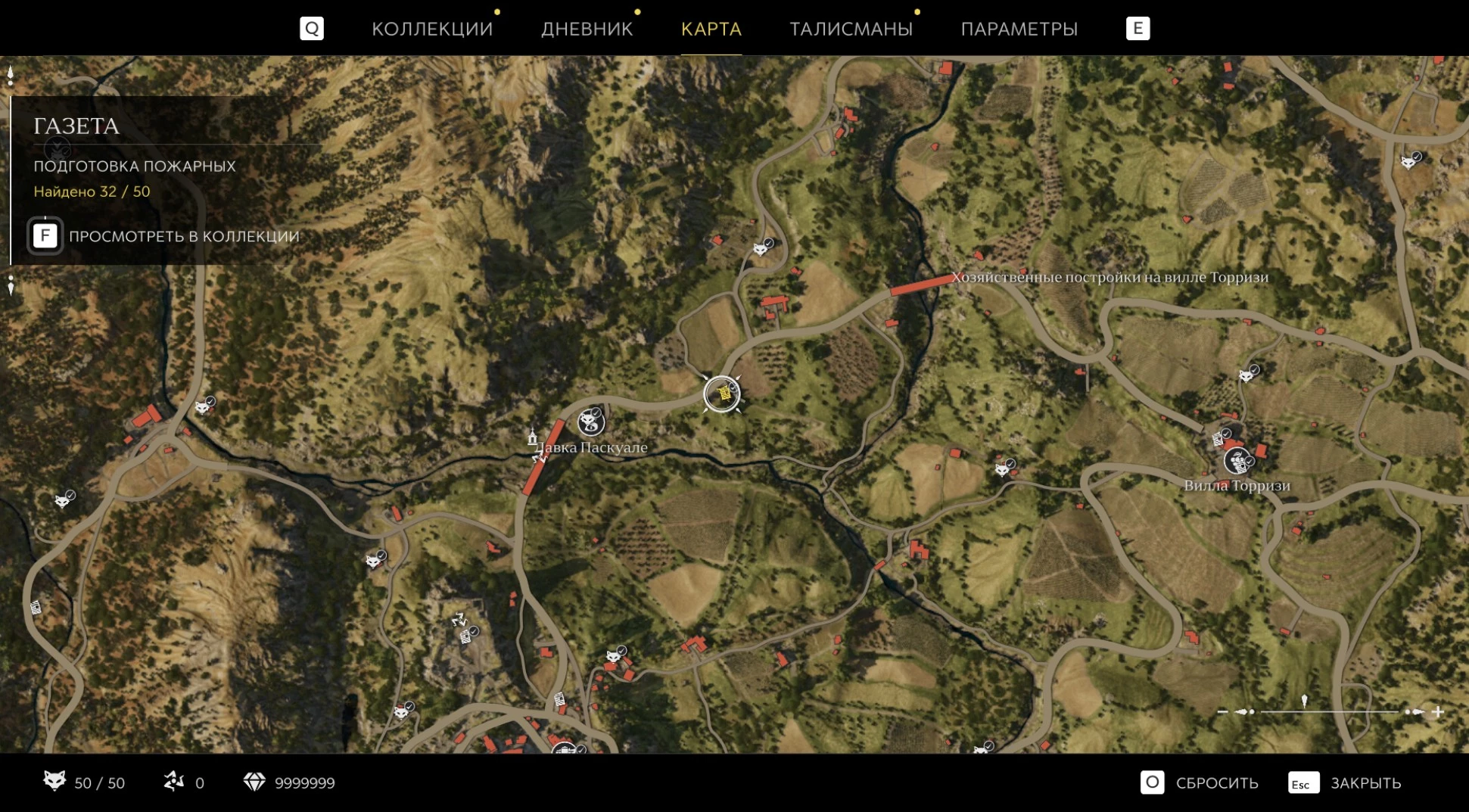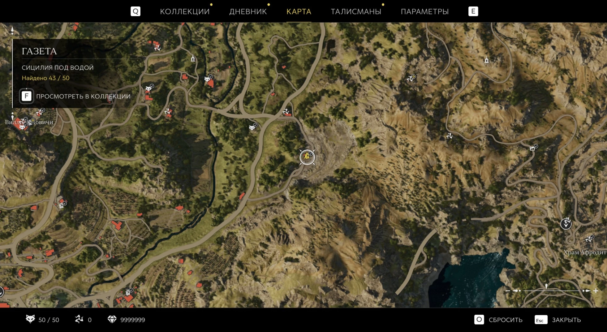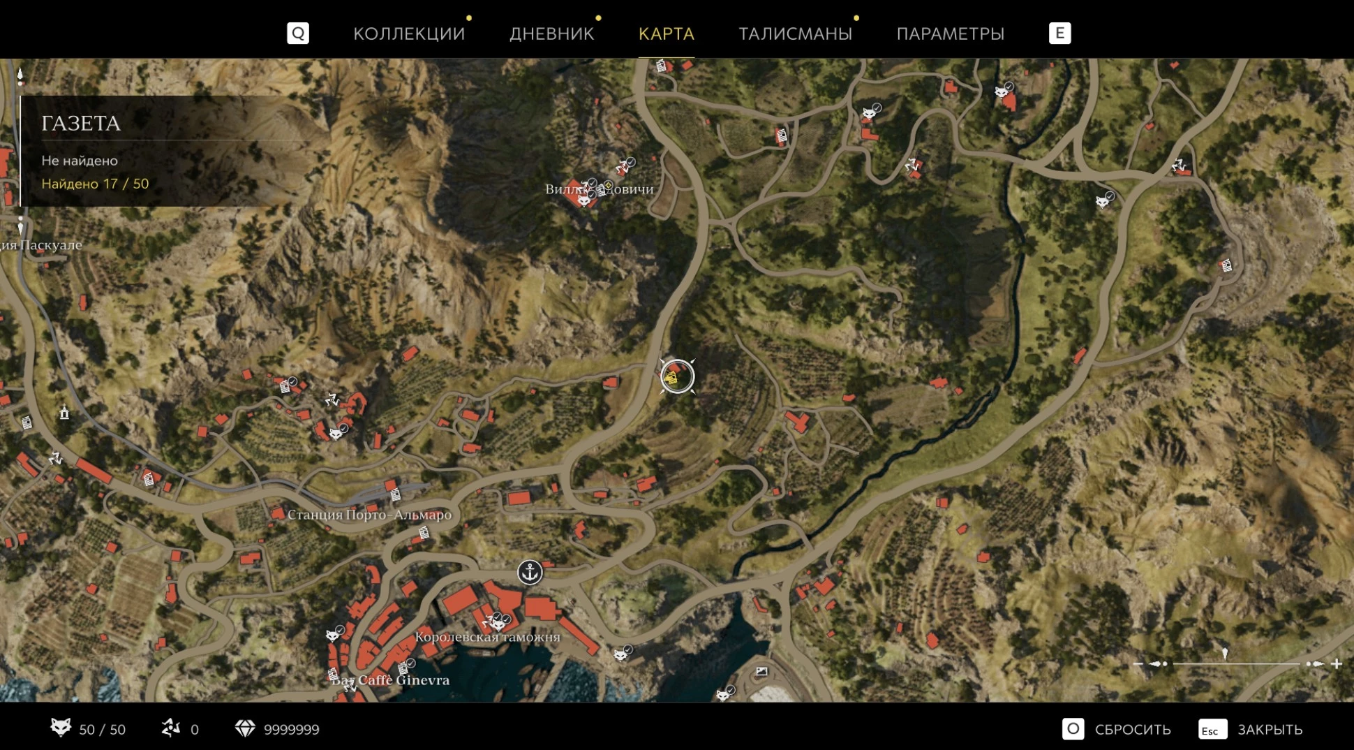При приближении к коллекционному предмету на карте отображается его белая иконка. Если предмет уже найден, иконка на карте будет отмечена галочкой.