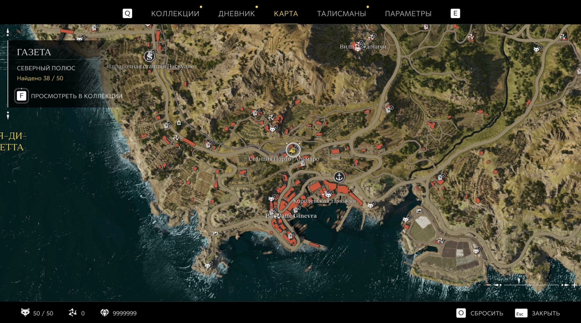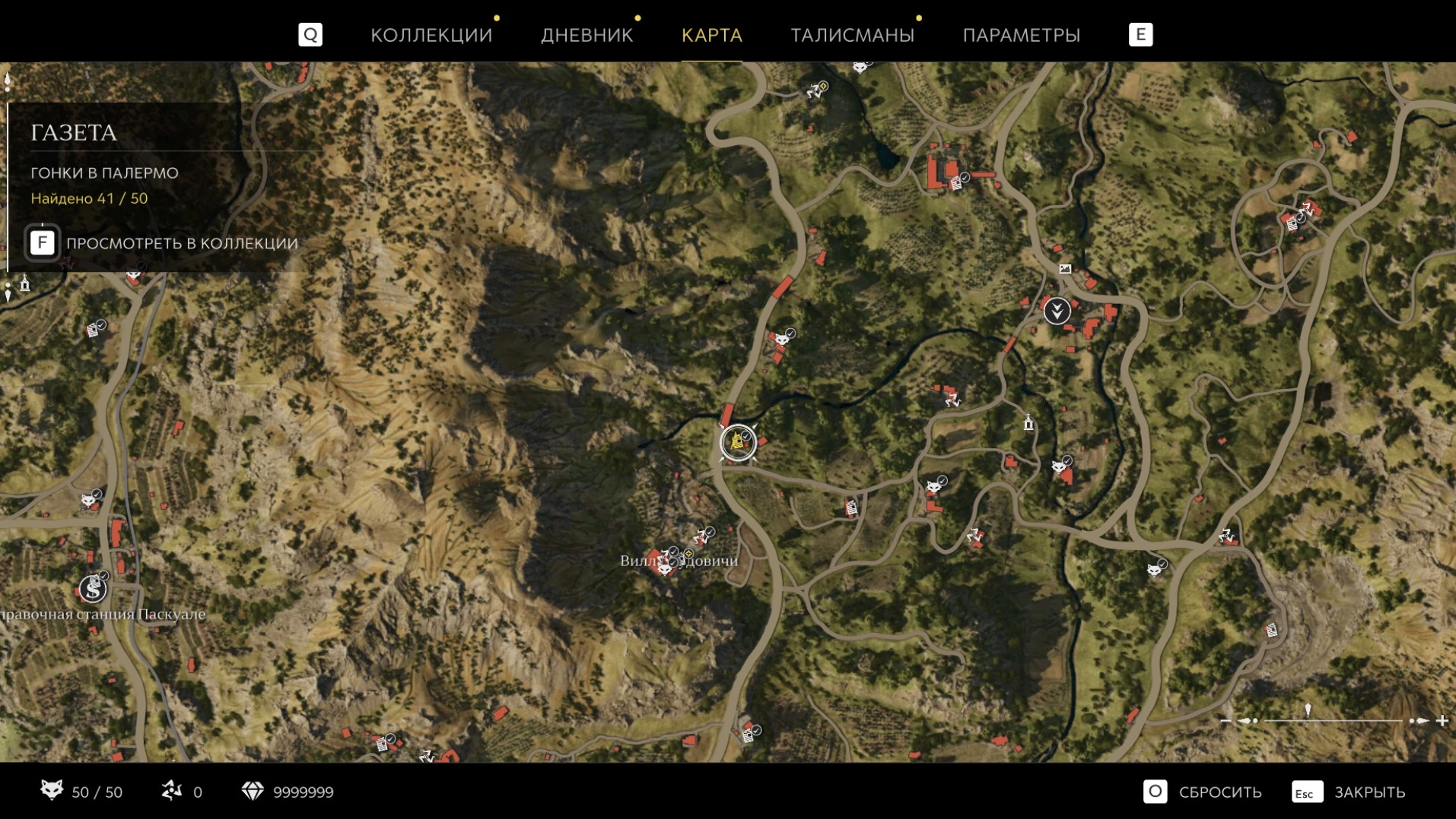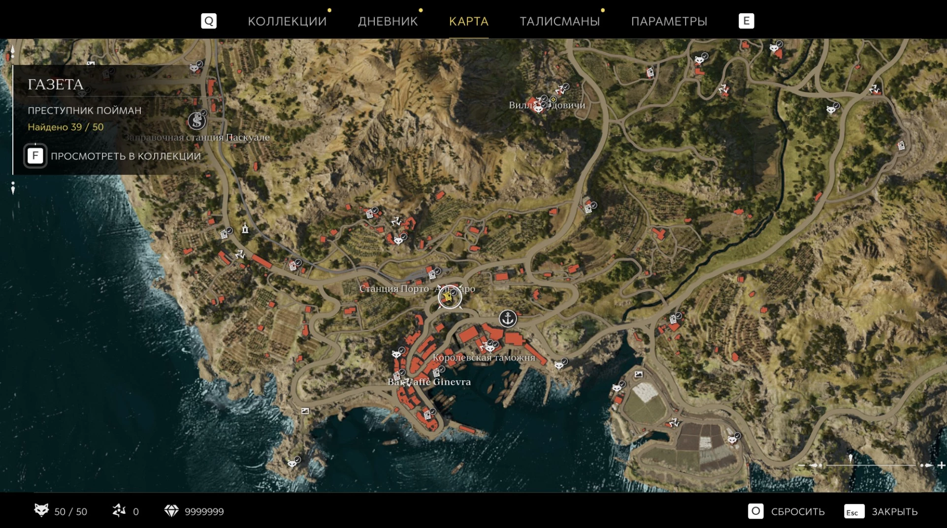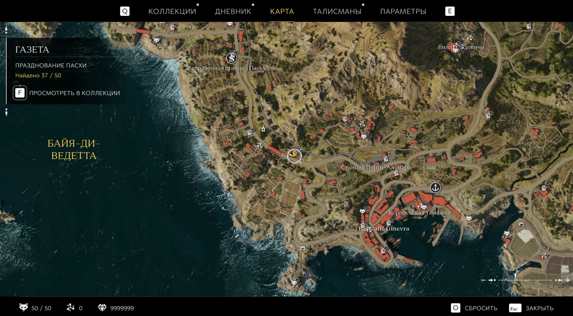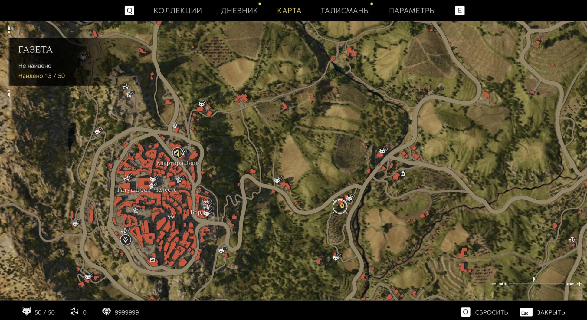 При приближении к коллекционному предмету на карте отображается его белая иконка. Если предмет уже найден, иконка на карте будет отмечена галочкой.
