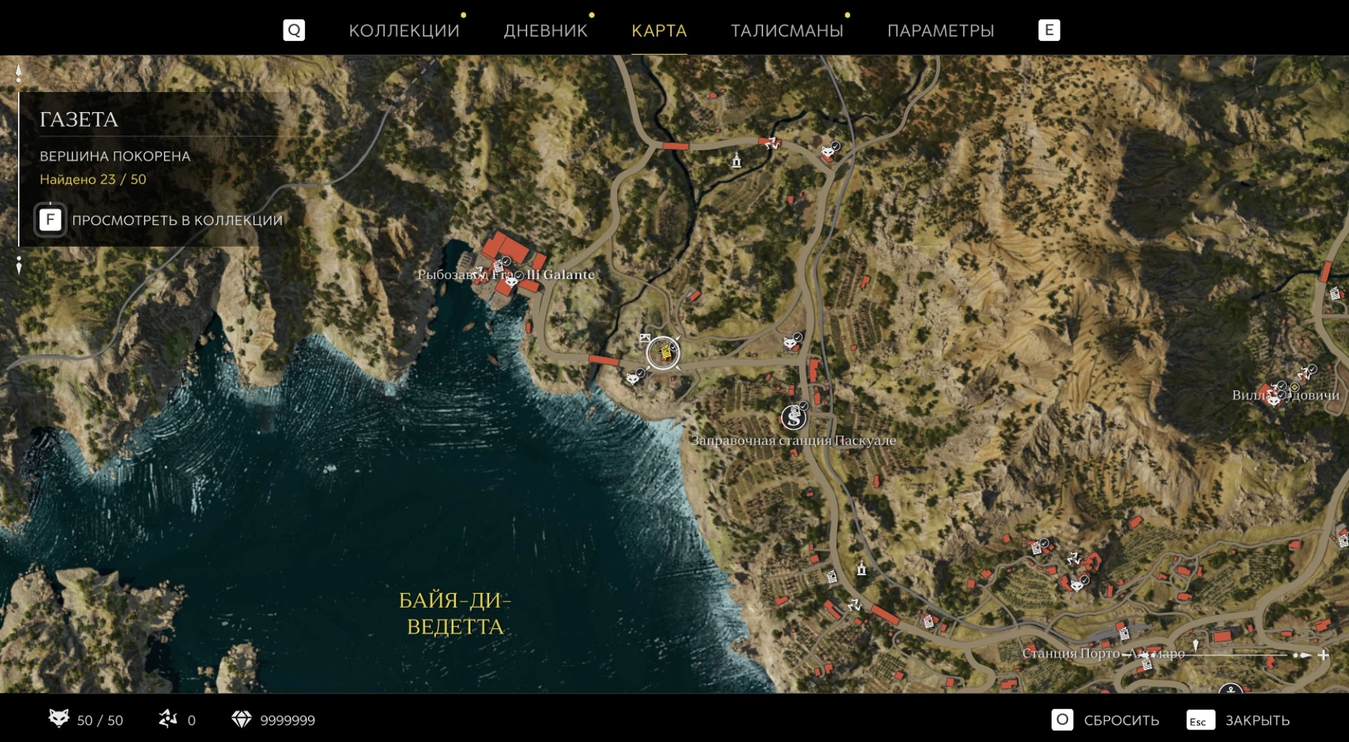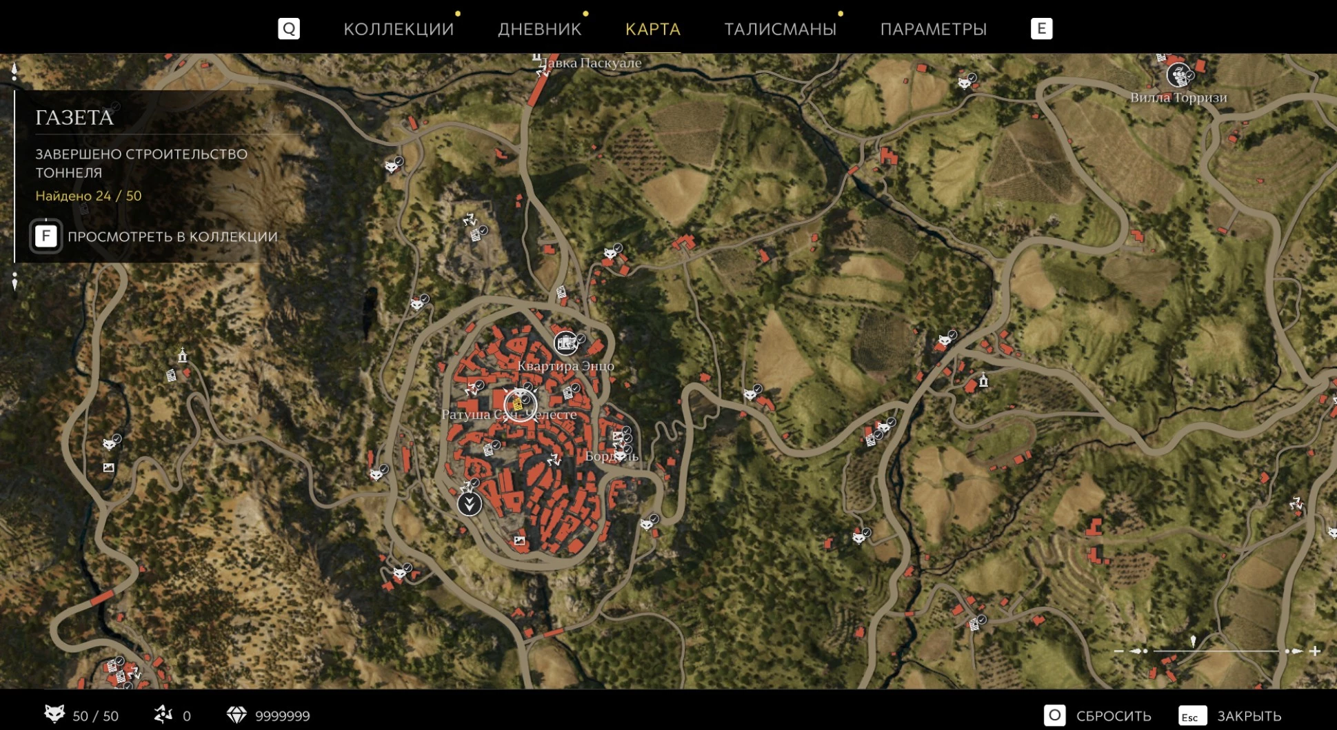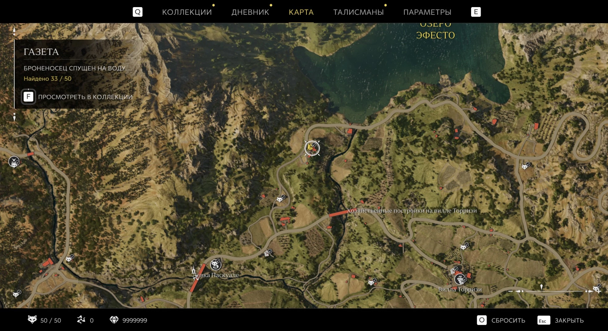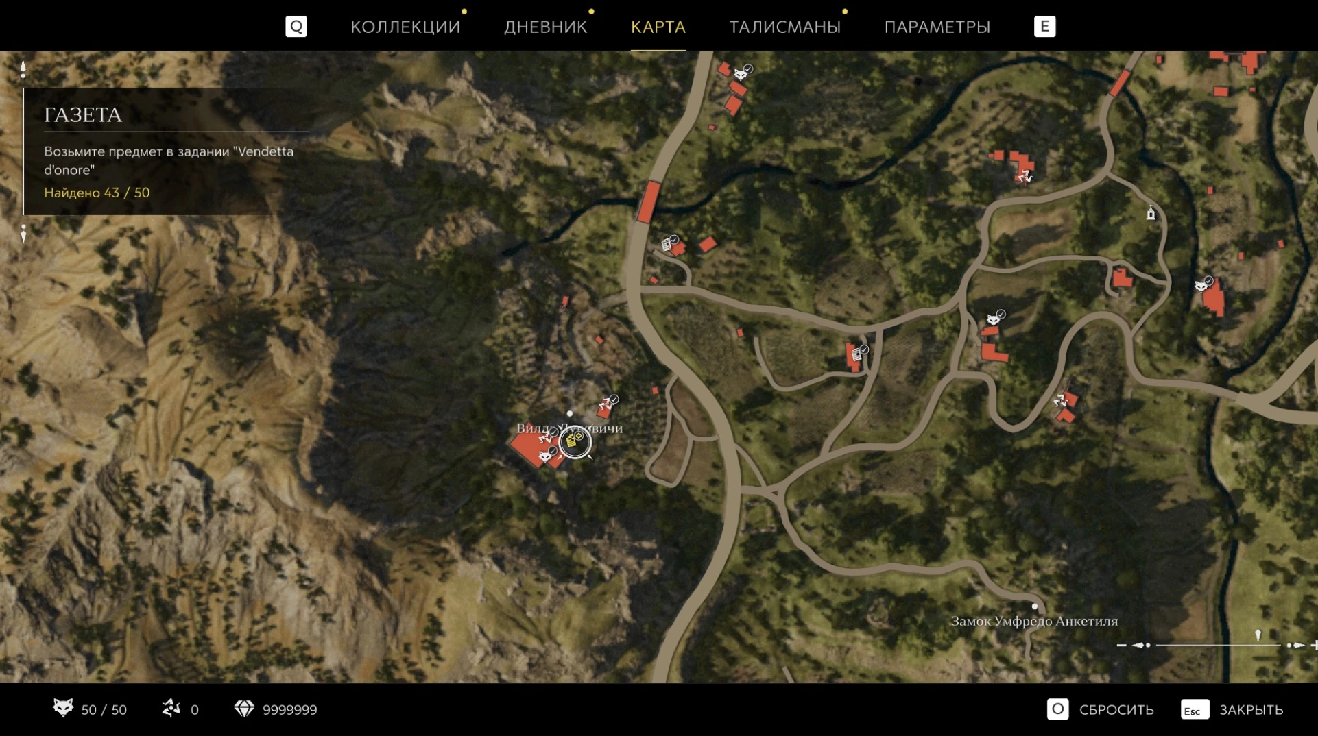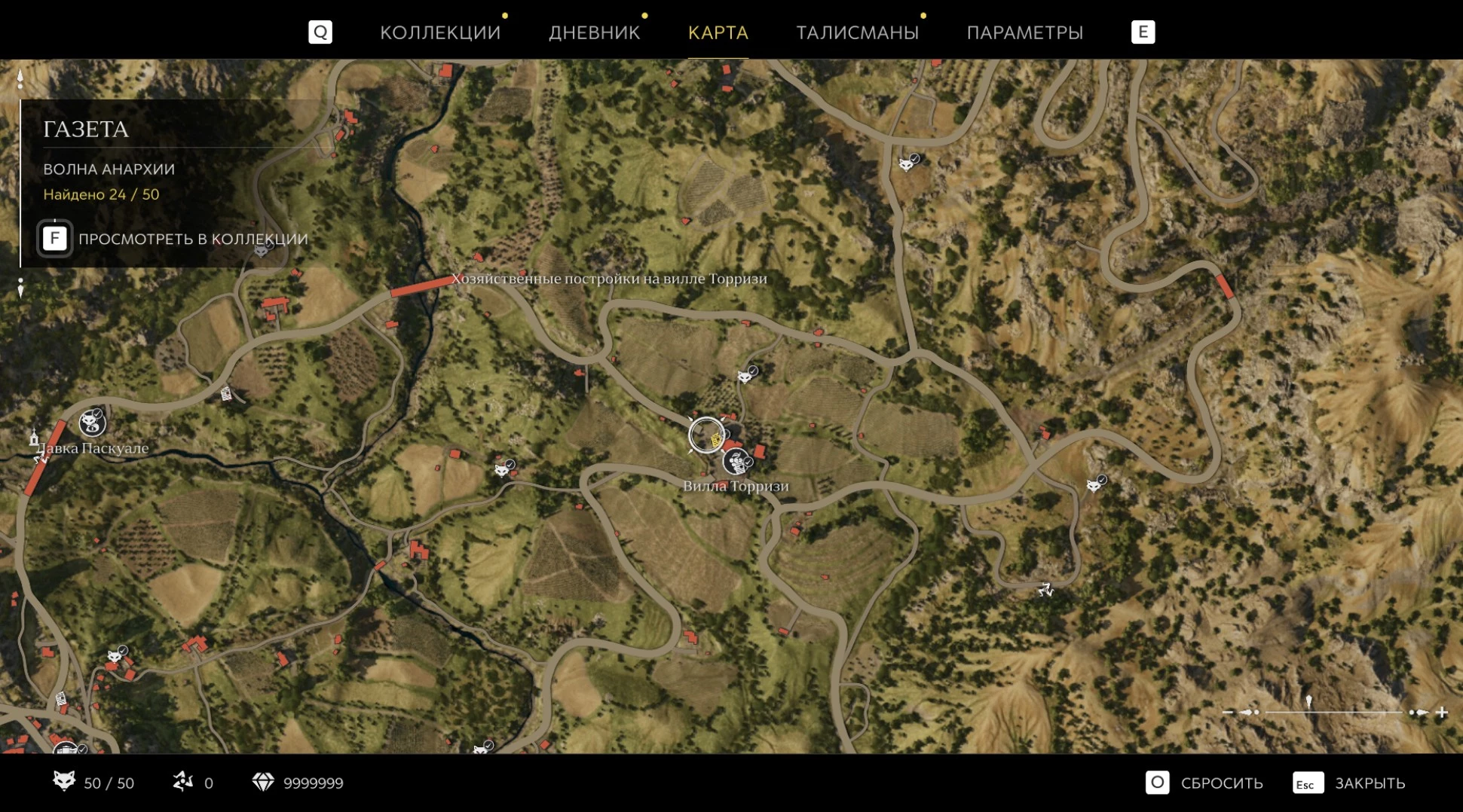 При приближении к коллекционному предмету на карте отображается его белая иконка. Если предмет уже найден, иконка на карте будет отмечена галочкой.