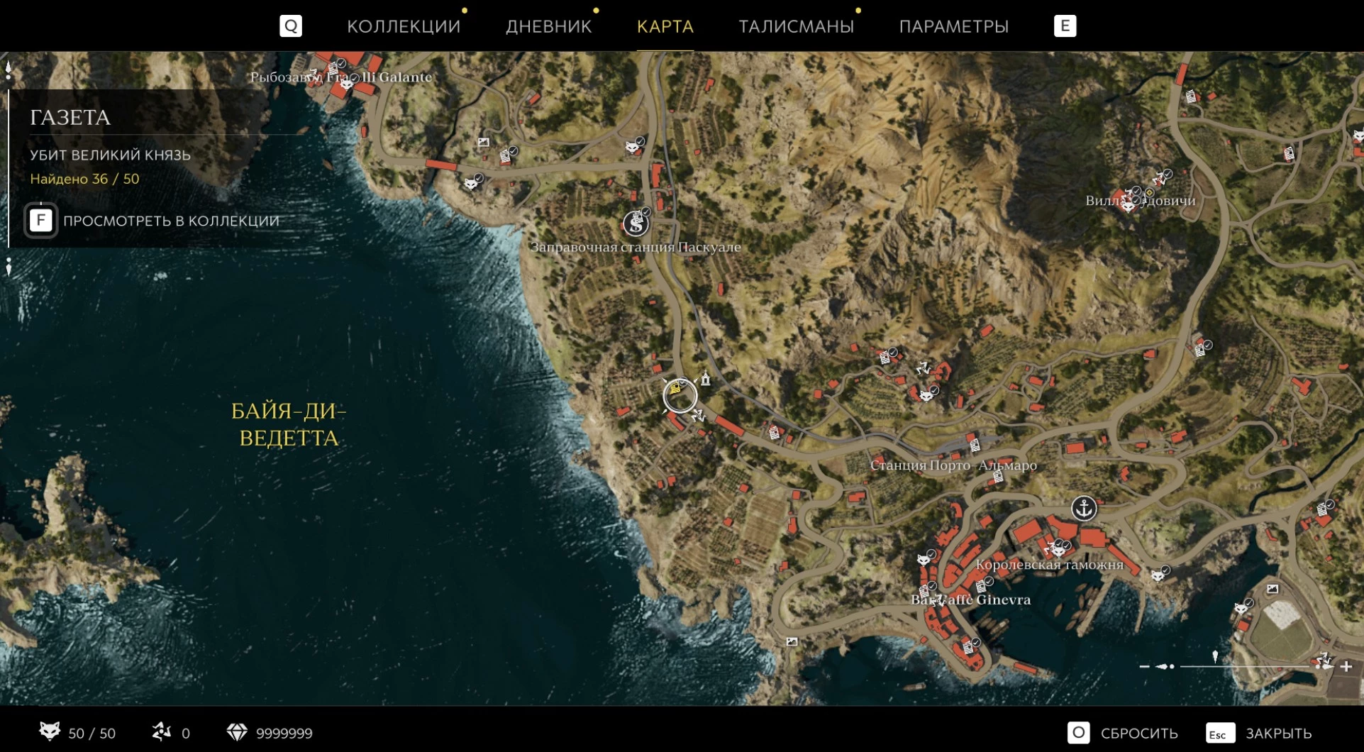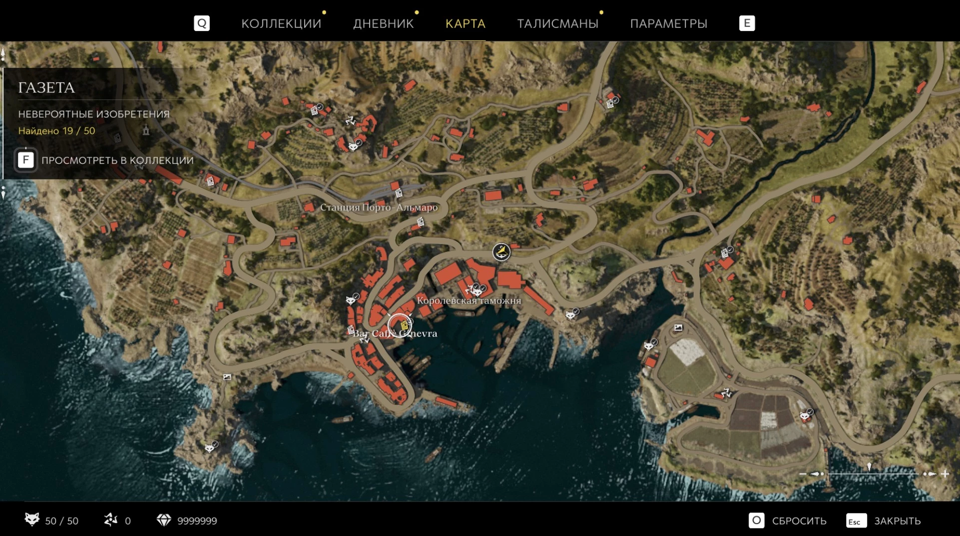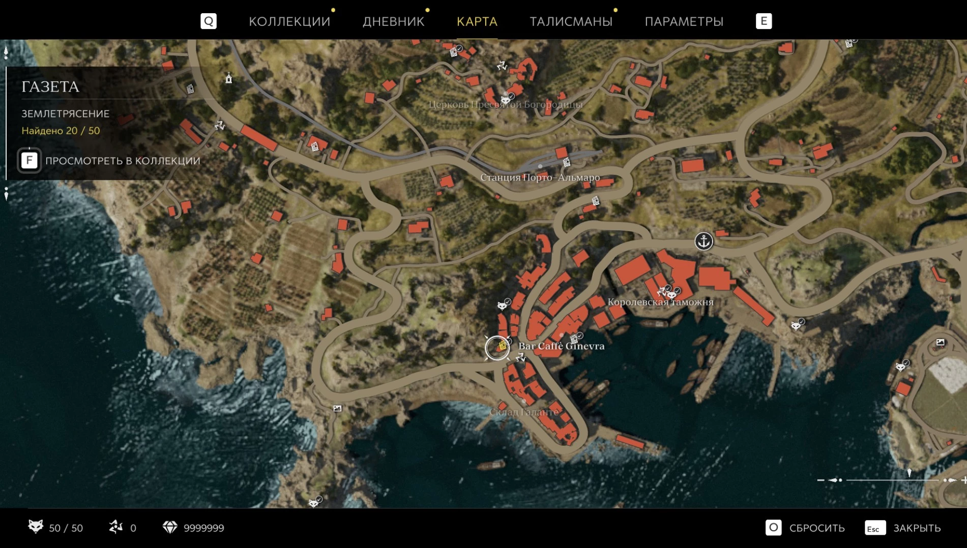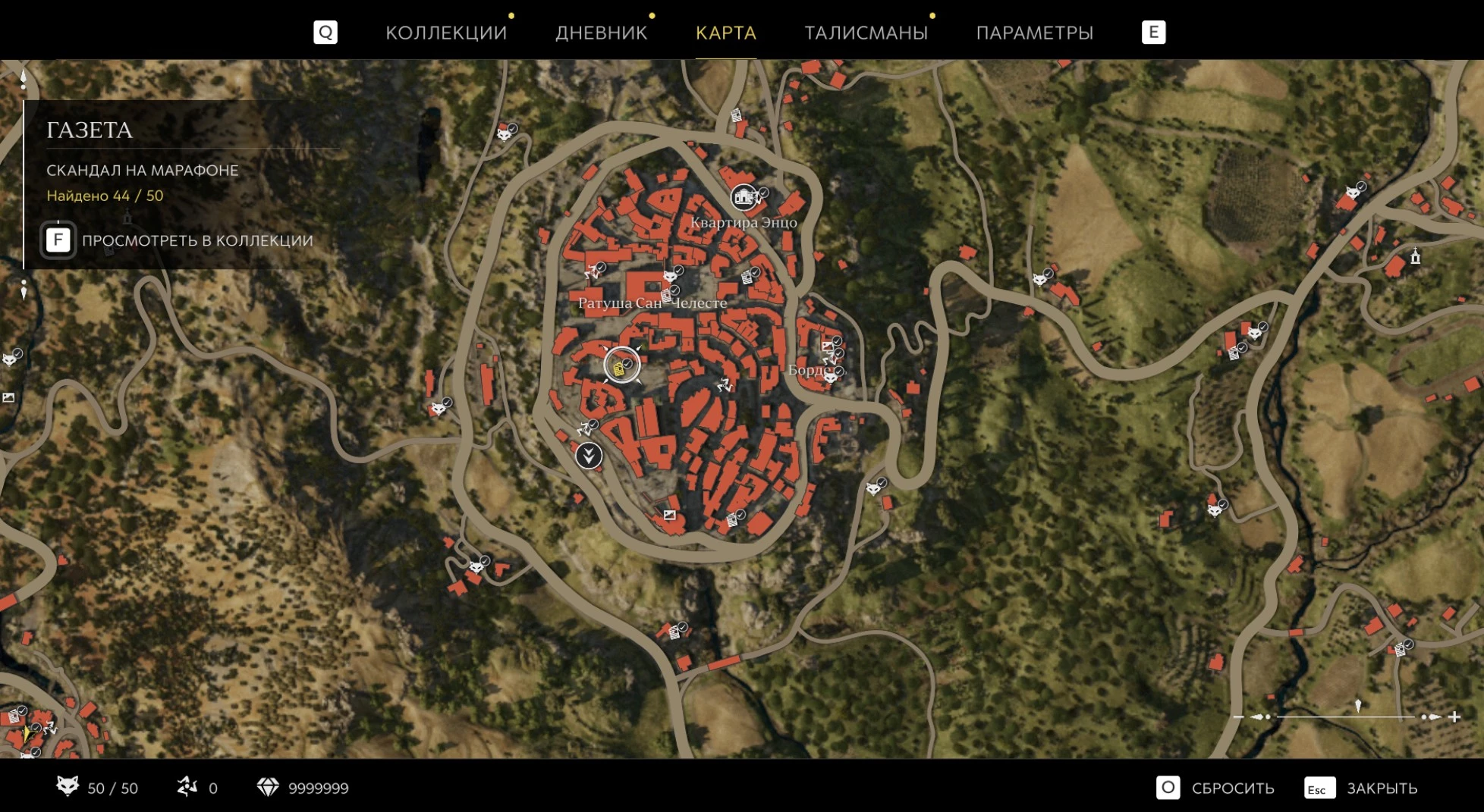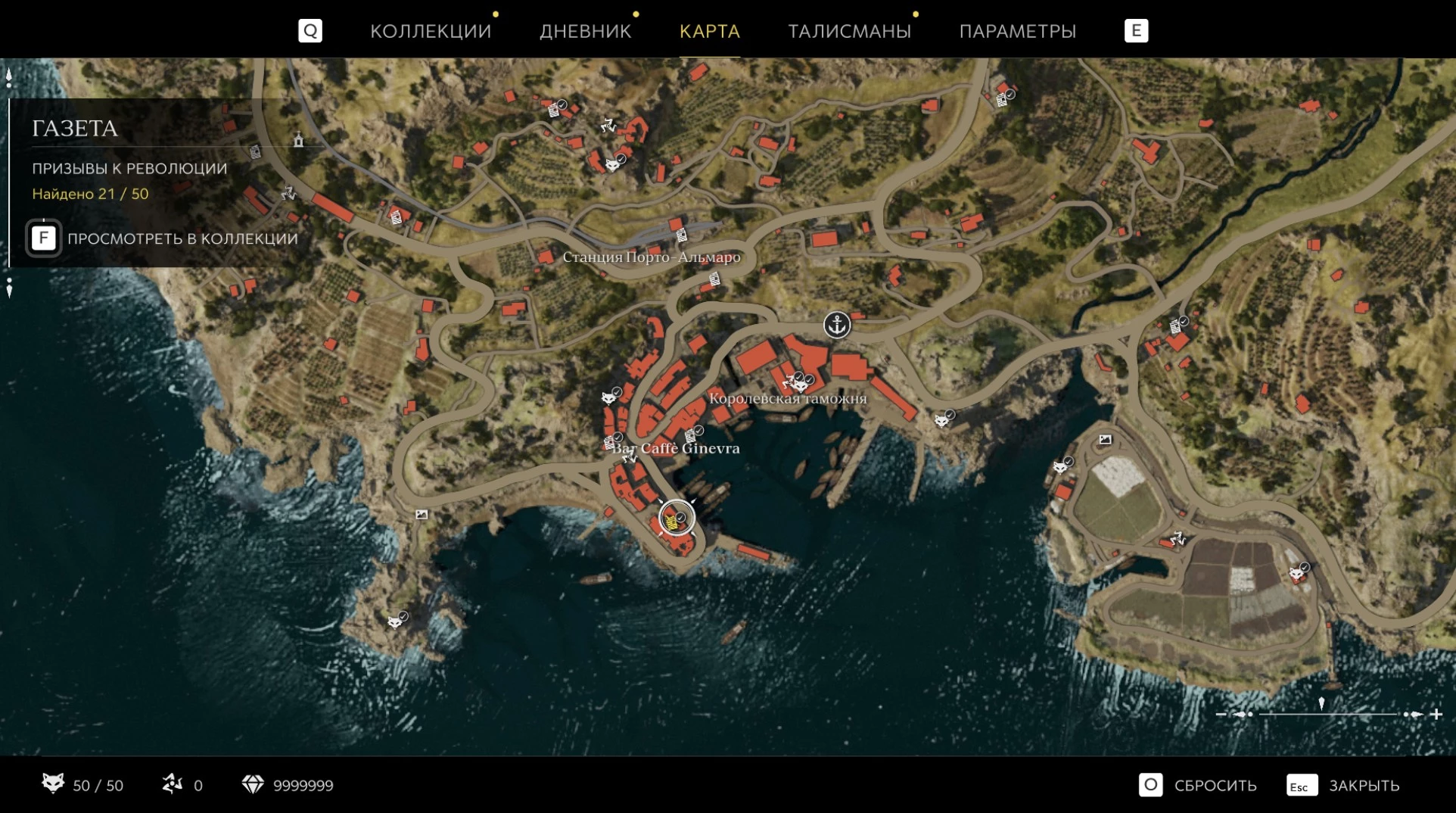 При приближении к коллекционному предмету на карте отображается его белая иконка. Если предмет уже найден, иконка на карте будет отмечена галочкой.