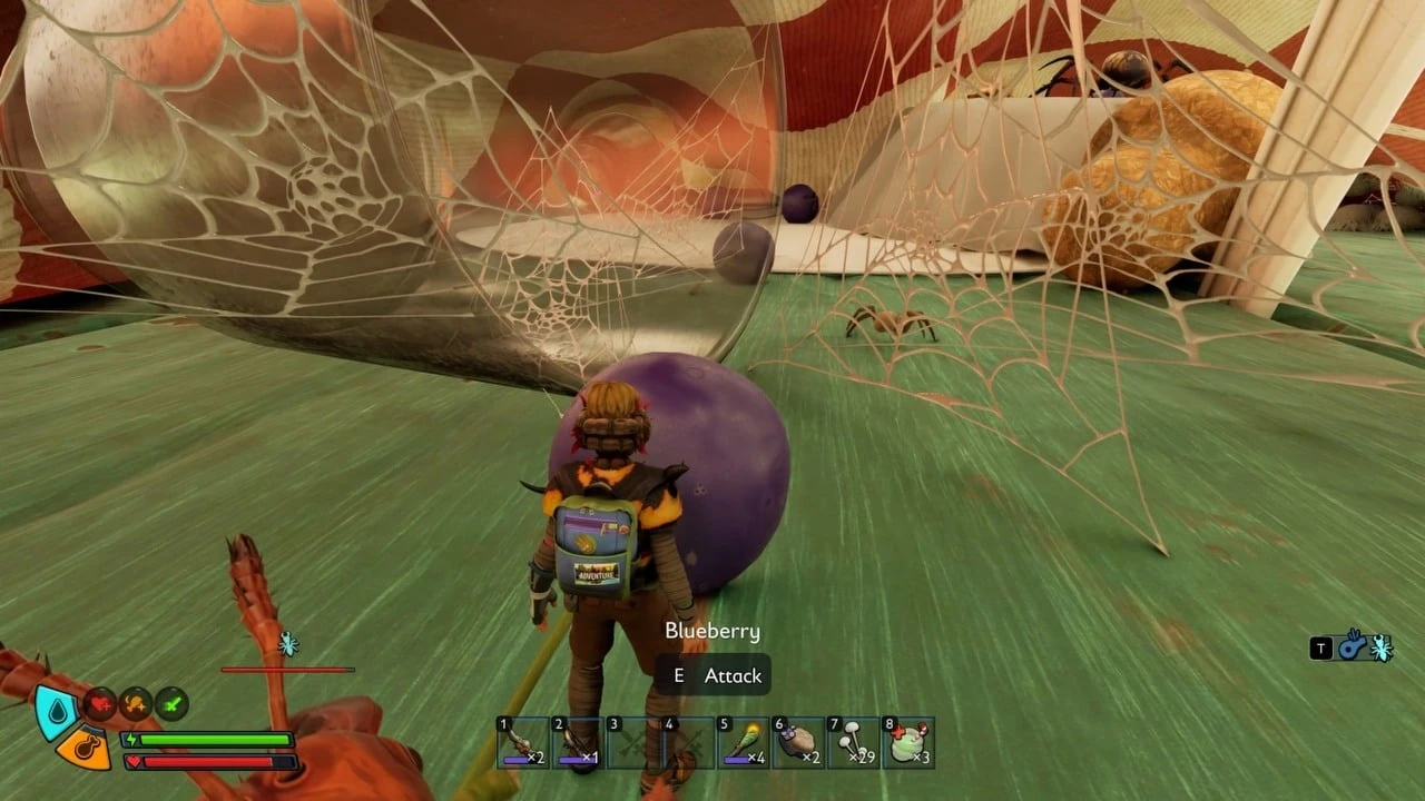 - Добравшись до стола, вам нужно забраться под скатерть. Именно там, в укромном уголке, вы найдете большое количество черники, а также... пауков! Будьте готовы к битве.