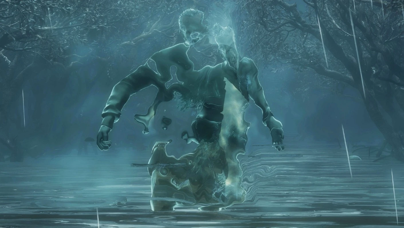 Если вы прошли игру без убийств, этот этап будет кратким. В противном случае река окажется значительно длиннее. В этом сражении практически отсутствуют игровые механики — просто двигайтесь по воде, уворачиваясь от призраков. Оружие против них бесполезно, стрельба не принесет результатов.