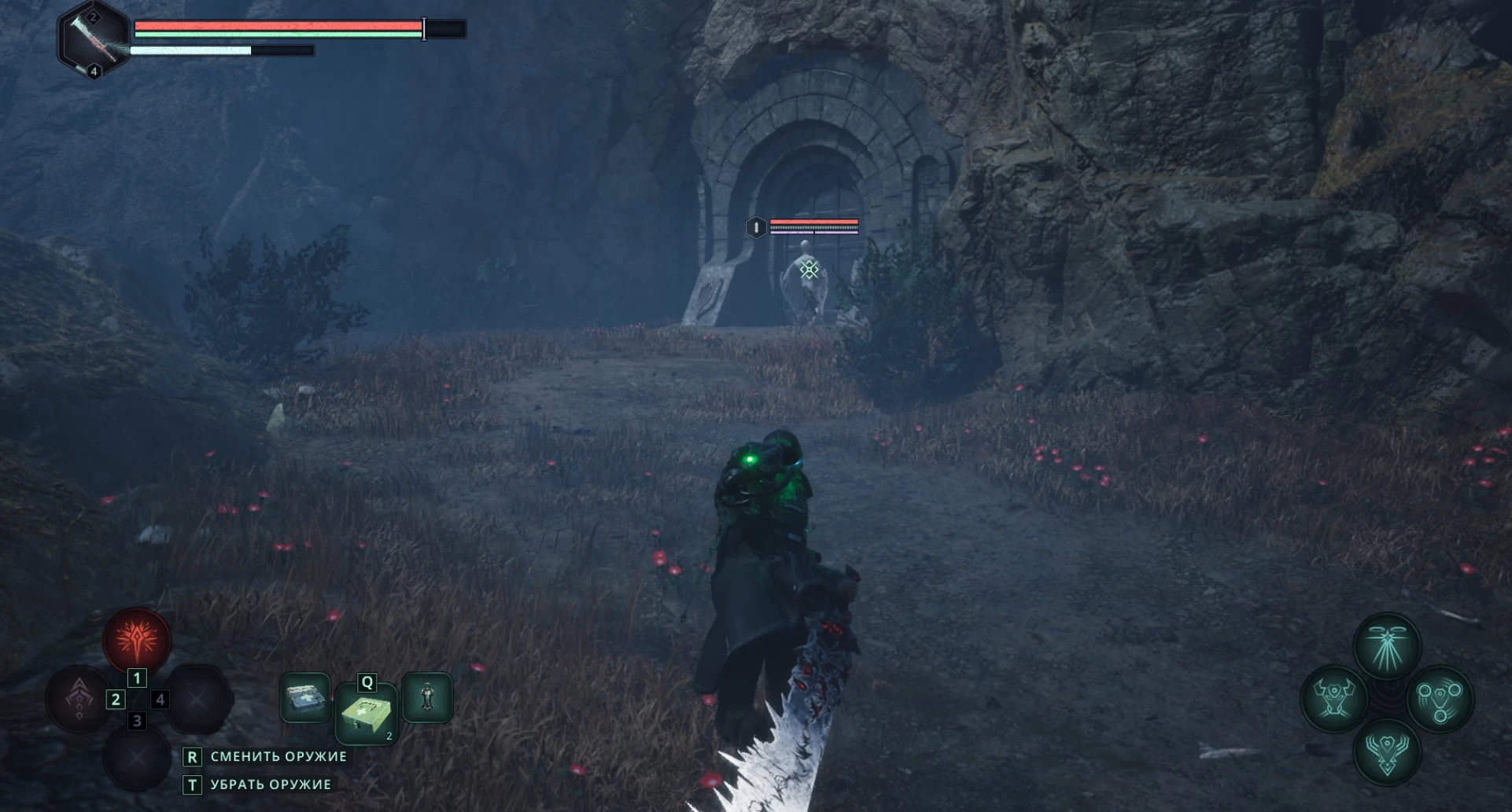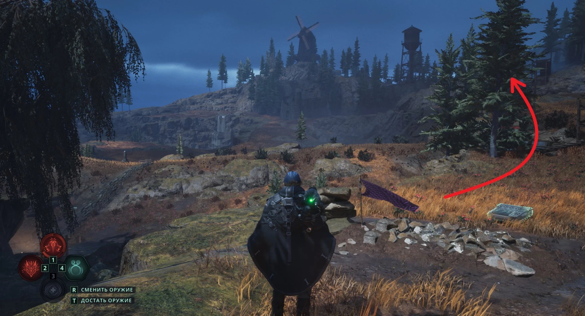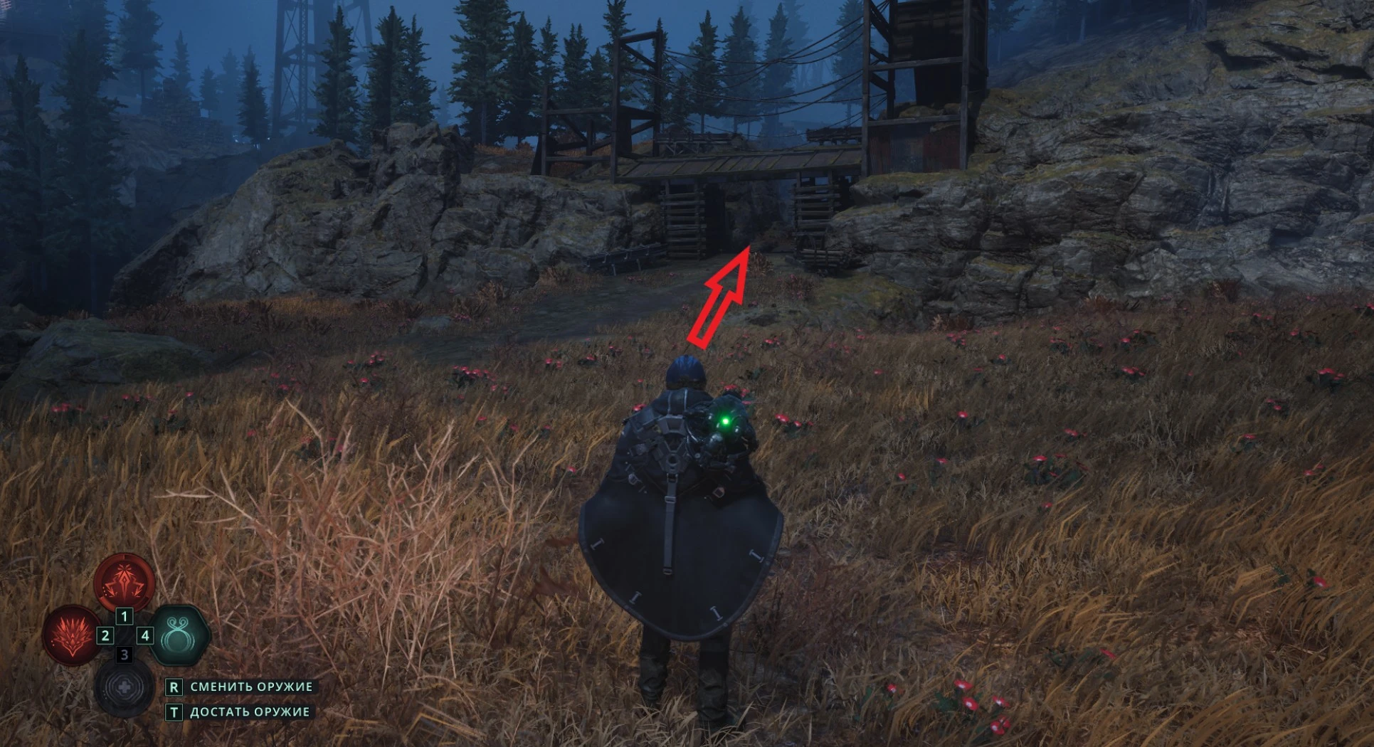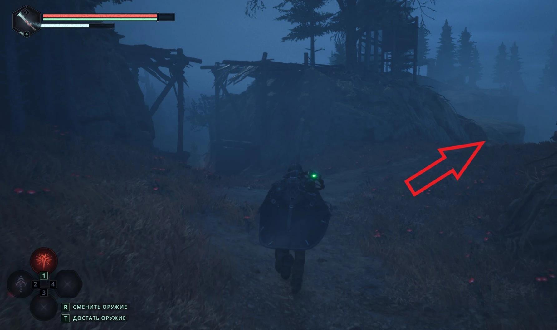 От могилы Виталиса вам следует двигаться в сторону водонапорной башни, которая видна в юго-западном направлении. Чтобы добраться туда, пройдите через ущелье под деревянной аркой.