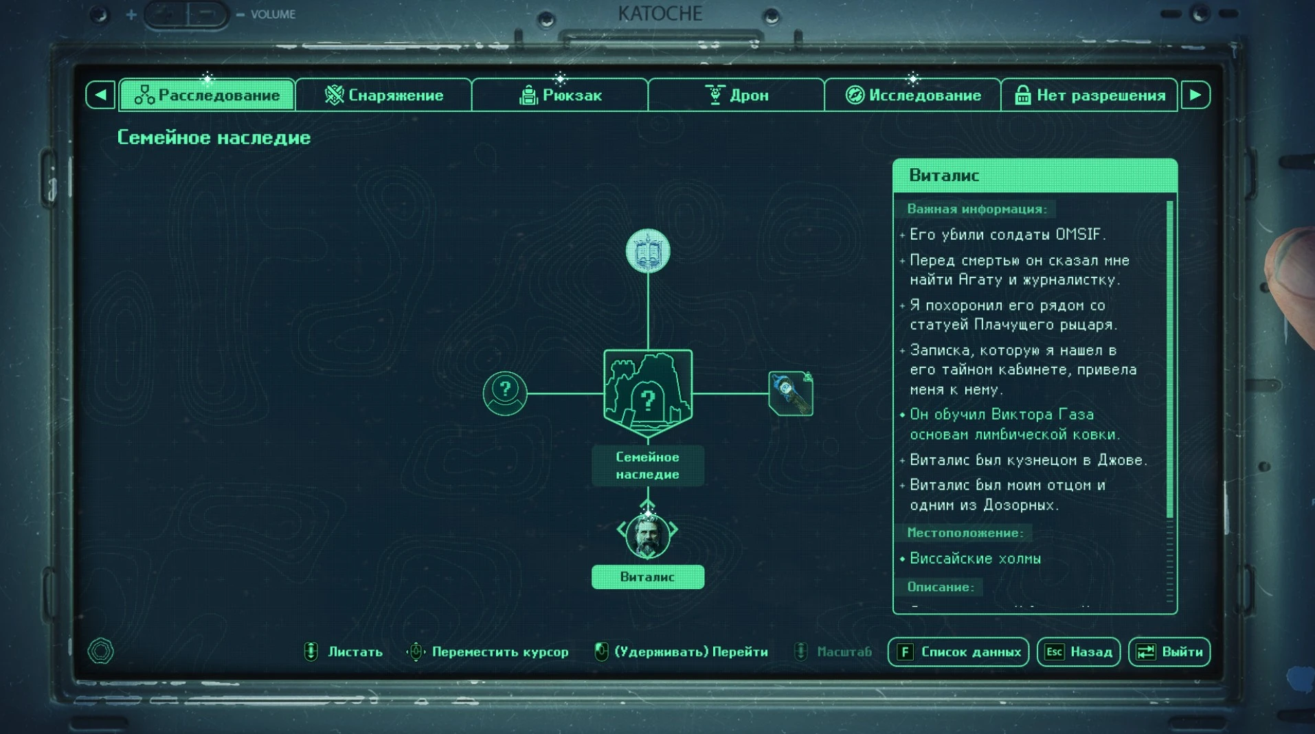 После вашего первого и последнего разговора с Виталисом ваш список задач и полезных сведений значительно расширится, но главной целью станет новое расследование под названием «Семейное наследие», детали которого можно найти в соответствующем разделе планшета.