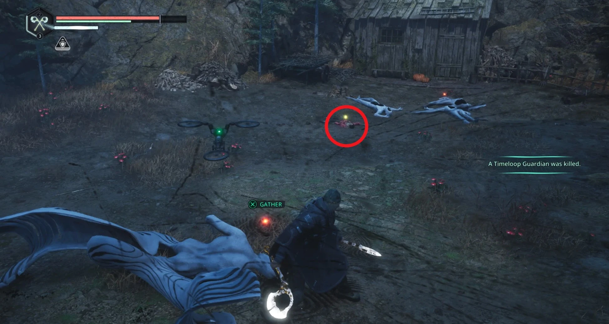 Пройдя несколько метров, вы окажетесь на небольшой открытой площадке с хижиной, вокруг которой бродит множество монстров. Приготовьтесь к сражению.