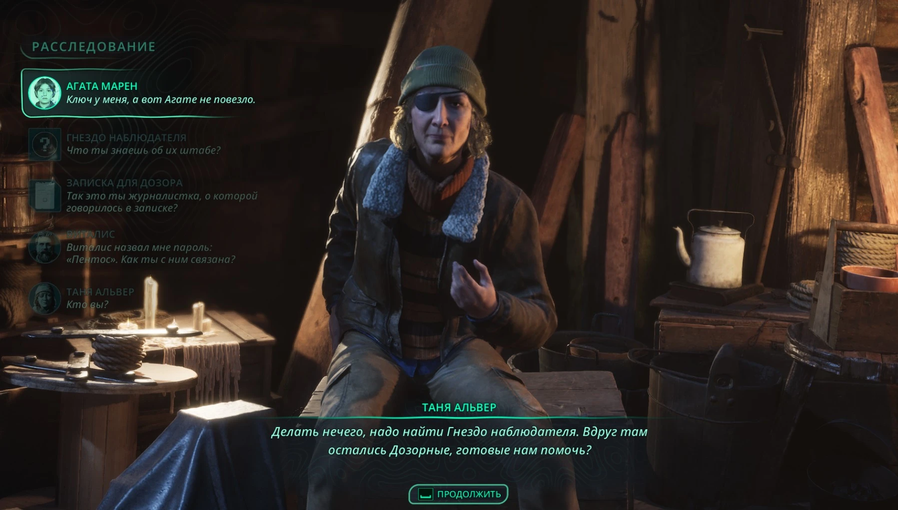 Это и есть Таня Альвер, та самая журналистка. Назвав ей пароль, который дал Виталис, вы узнаете много полезной информации, в том числе о том, что где-то поблизости находится штаб тайного ордена Дозорных под названием Гнездо наблюдателя.