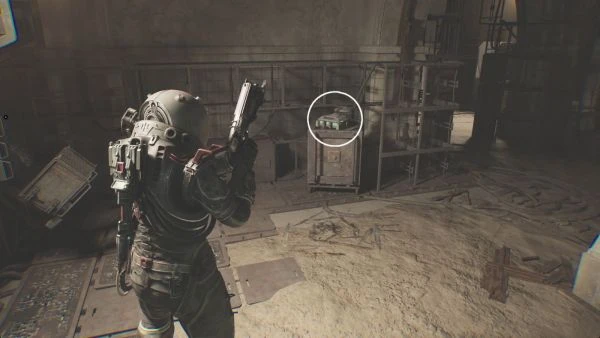 В следующей комнате, в первую очередь, загляните за дверь слева — там находится кладовая, забитая хламом и источником энергии. В соседнем помещении приготовитесь к атаке мутировавшего противника. Снаружи торговой точки размещены взрывоопасные контейнеры, которые можно использовать, чтобы заманить туда врага. Не углубляйтесь сразу в открытое пространство: там затаился еще один монстр, искусно притворяющийся мертвым. Сначала разберитесь с первым, а потом уже атакуйте второго.