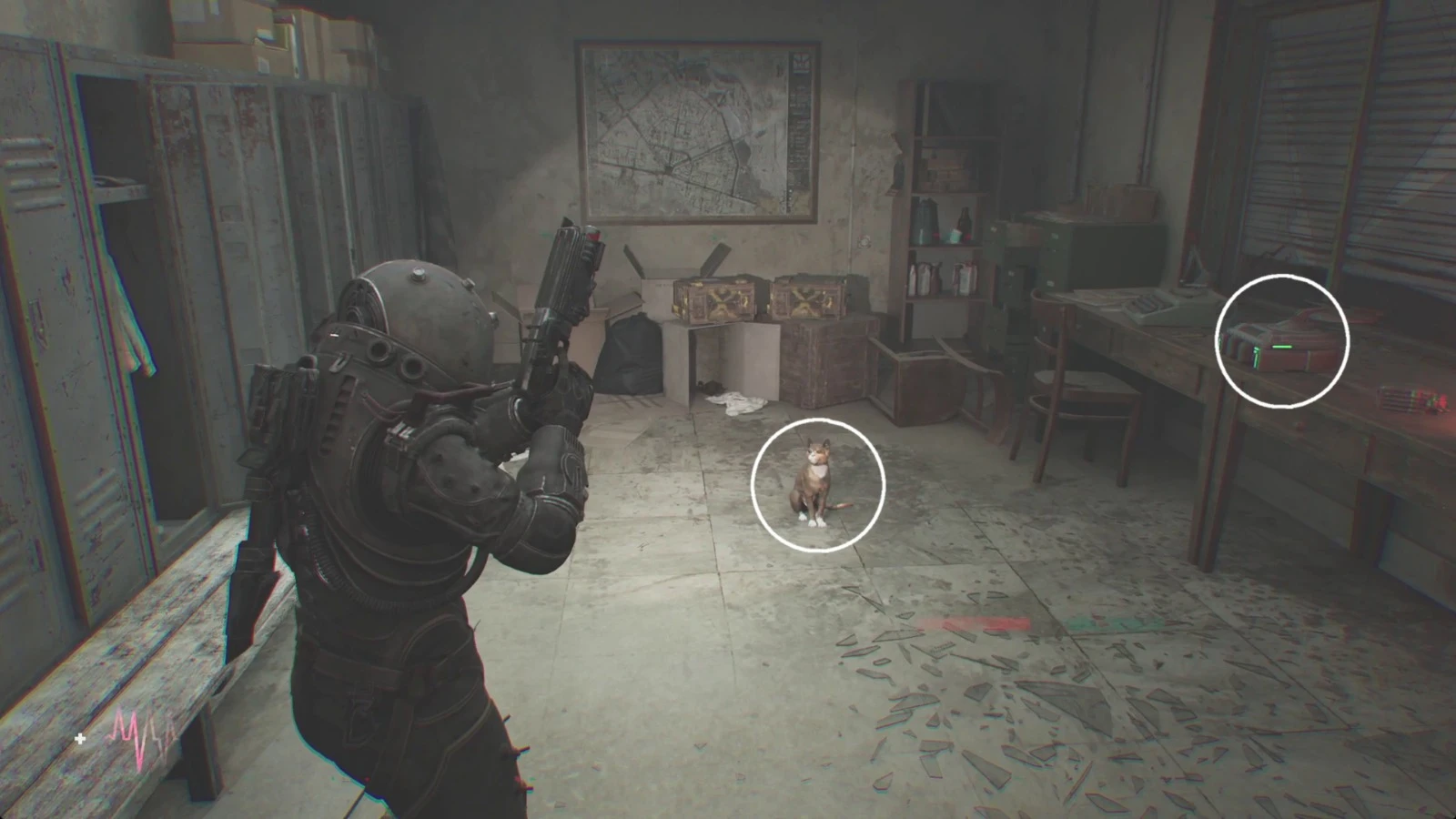 После активации обоих генераторов и восстановления электроснабжения, откроется доступ в офис на центральной платформе. Внутри вы повстречаете кота по кличке Цинамон. Погладьте его, чтобы он оставил энергетическое ядро. В этом же офисе лежит очередной коллекционный журнал.