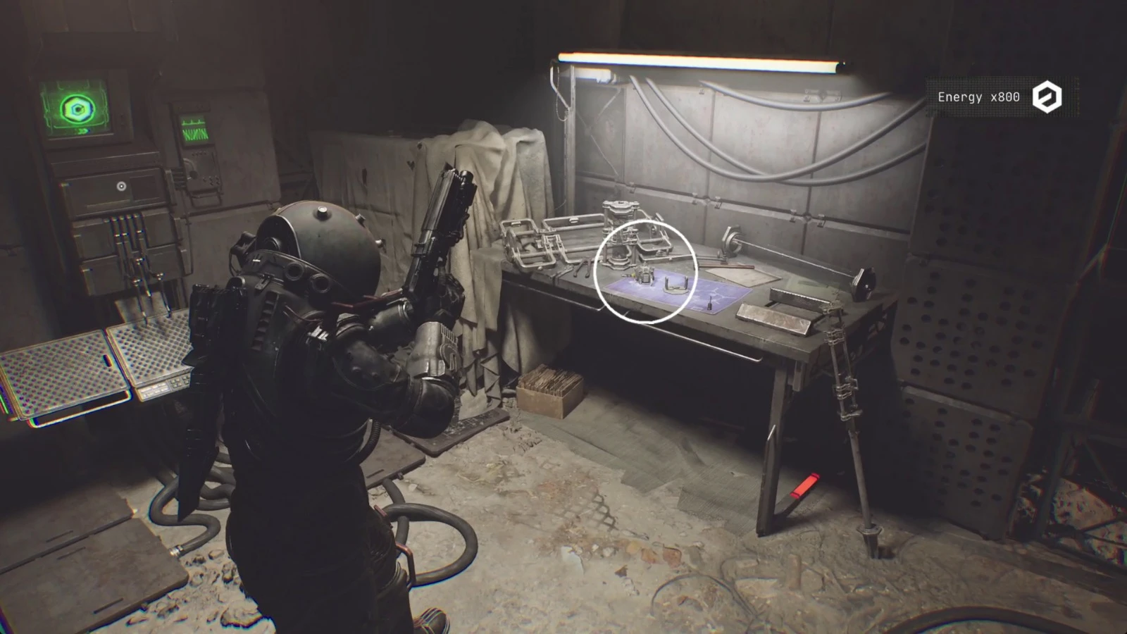 После получения сканера целостности спуститесь вниз и осмотрите стол у подножия лестницы. Там находится ящик, его можно разбить. Кроме небольшого количества энергии, там же лежит еще один коллекционный журнал.