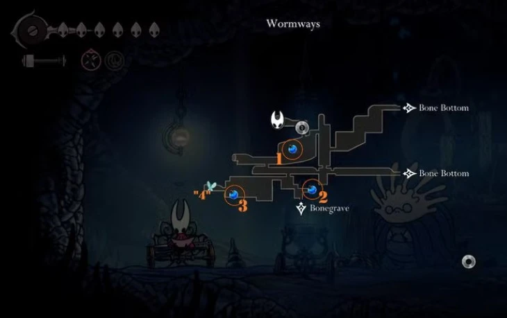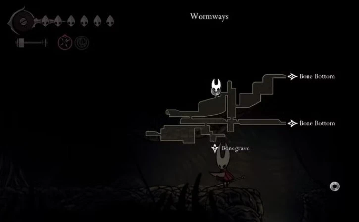 Третий источник плазмиума можно найти в нижнем левом углу Червоточин. Здесь необходимо маневрировать между падающими червями, преодолевать разрывы в полу и обходить острые шипы. В левой части локации разрушьте ложную стену, чтобы открыть проход, перемещайтесь по платформам и спуститесь вдоль левой стены – в нише вы увидите сияние плазмиума. В этой же области лежит погибшая пилигримка с медальоном, поэтому осмотритесь внимательно.
