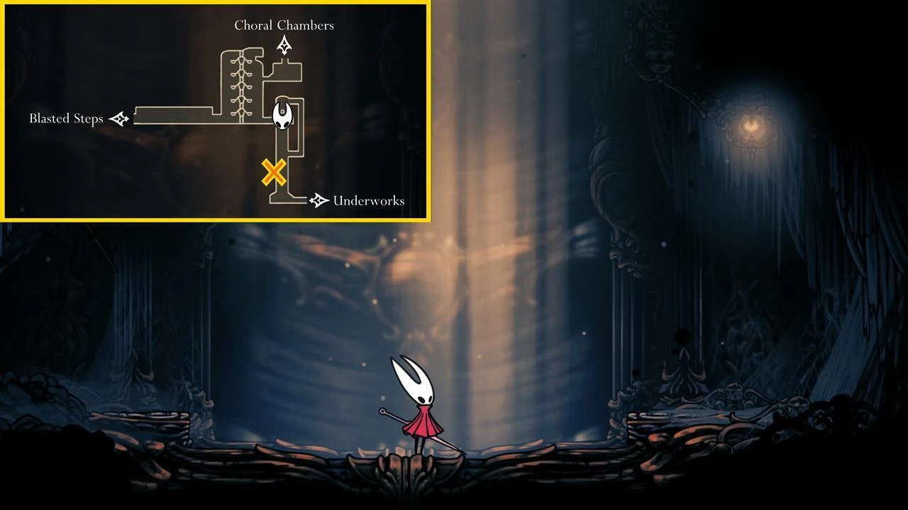 Эта часть игры насыщена платформингом и сражениями с боссами, поэтому убедитесь, что ваш персонаж находится в отличной форме. Для улучшения персонажа, воспользуйтесь гайдами по сбору осколков масок (Mask Shards), фрагментам катушек (Spool Fragments) и бледного масла (Pale Oil).
