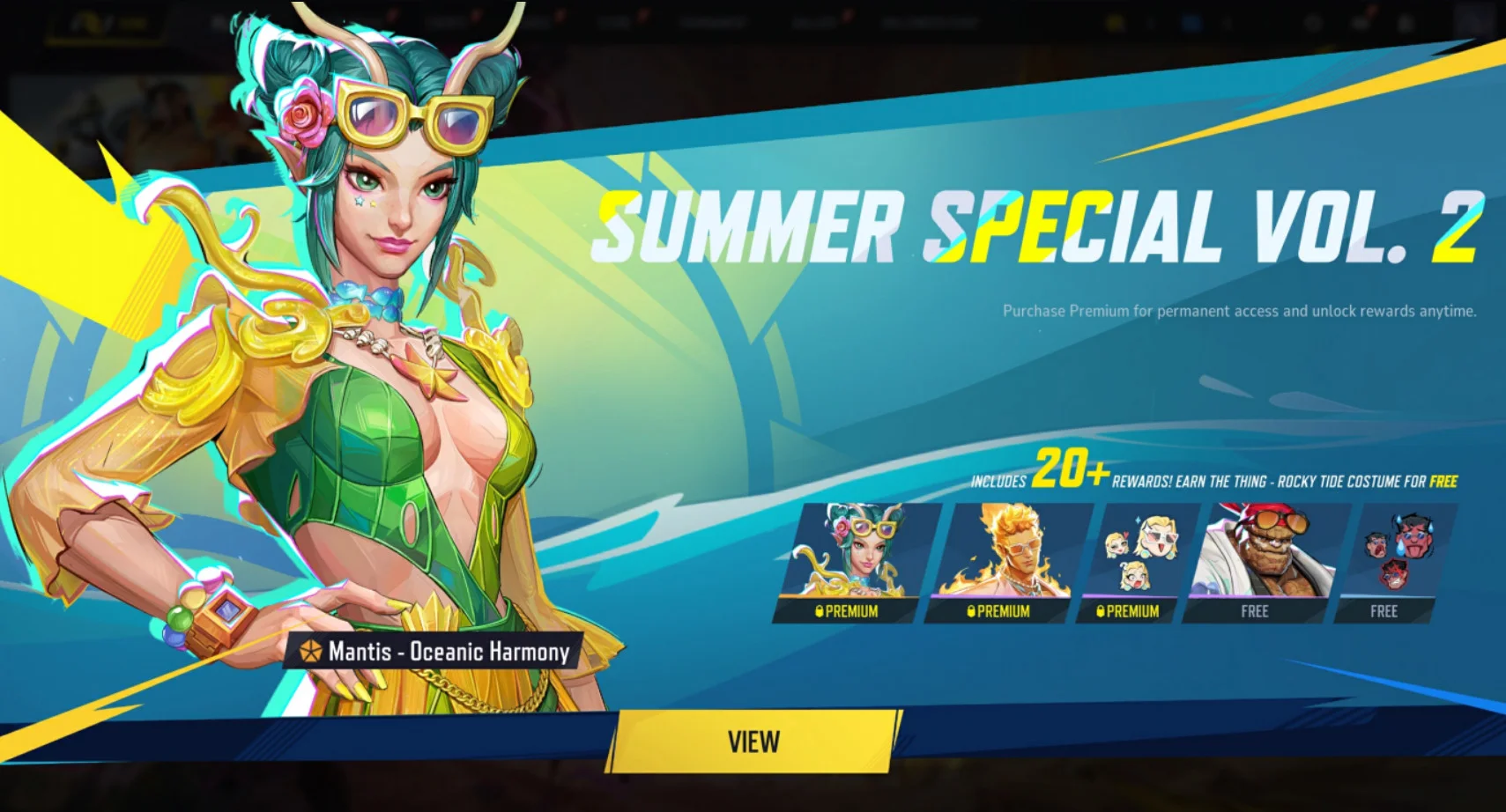 Событие представляет собой боевой пропуск, прогресс в котором зависит от полученного в матчах опыта. Бесплатная ветка предлагает пляжный наряд для Существа, а премиум-версия открывает доступ к летним костюмам для Человека-факела и Мантис. Ивент продлится до 17 октября, но владельцы премиум-пропуска смогут прокачивать его без ограничений по времени.