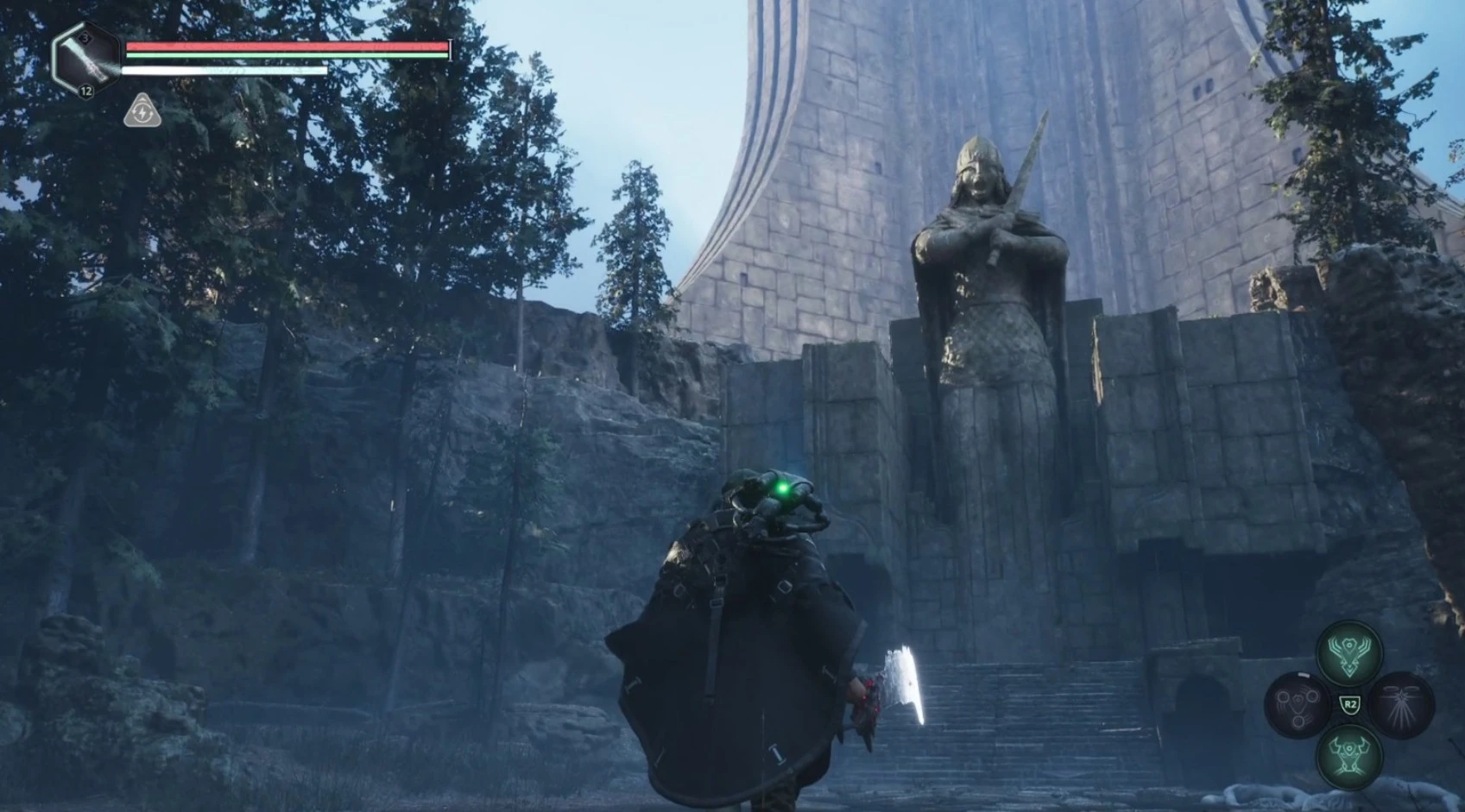 Далее вас ждет лесная тропинка с противниками, ведущая к загадочной скале на востоке, куда теперь направлены статуи орлов и королевы.