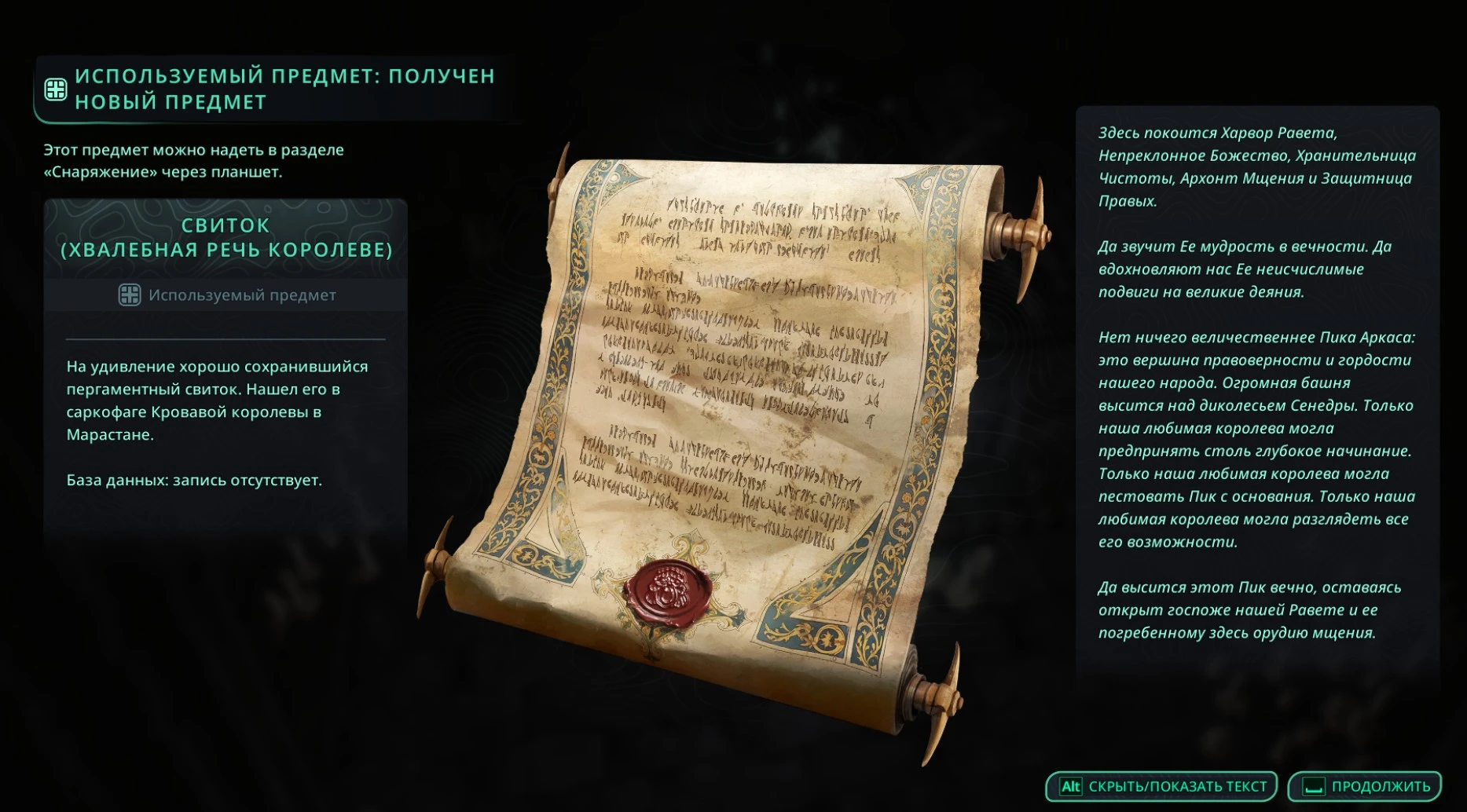 Так вы получите меч Кровавой королевы и древний свиток, которые после изучения Таней приведут вас к Пику Аркаса.