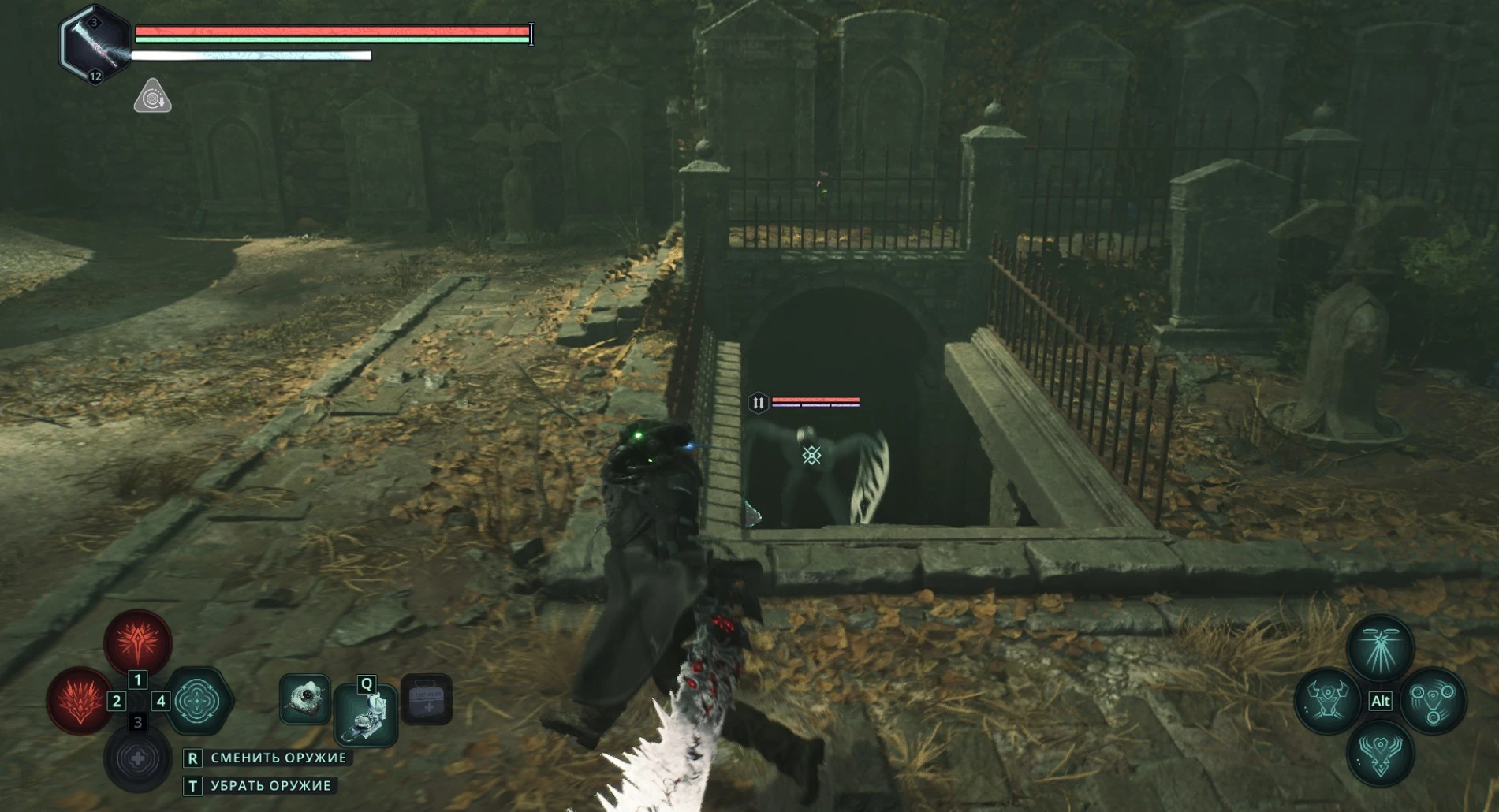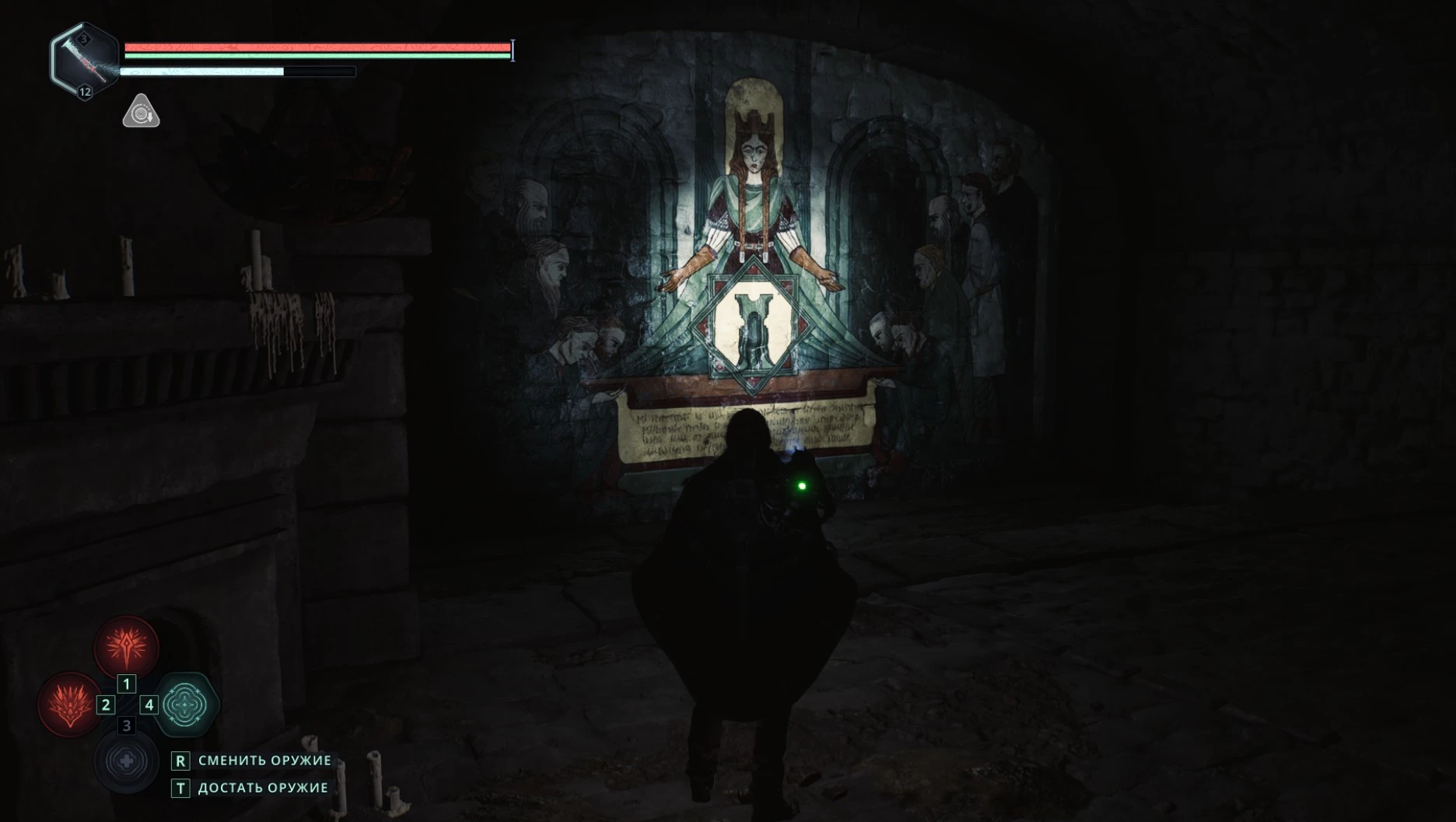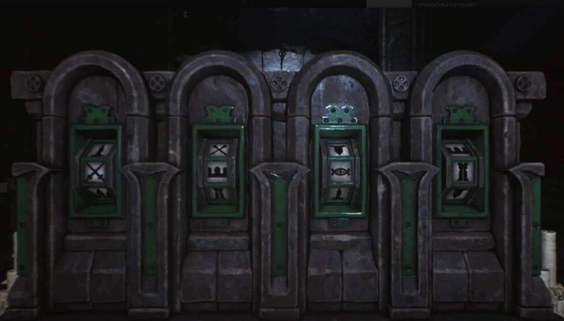 После верной установки статуй раздастся гул, и один из склепов откроется, выпустив монстра и освободив проход в потаенное подземелье под церковью.