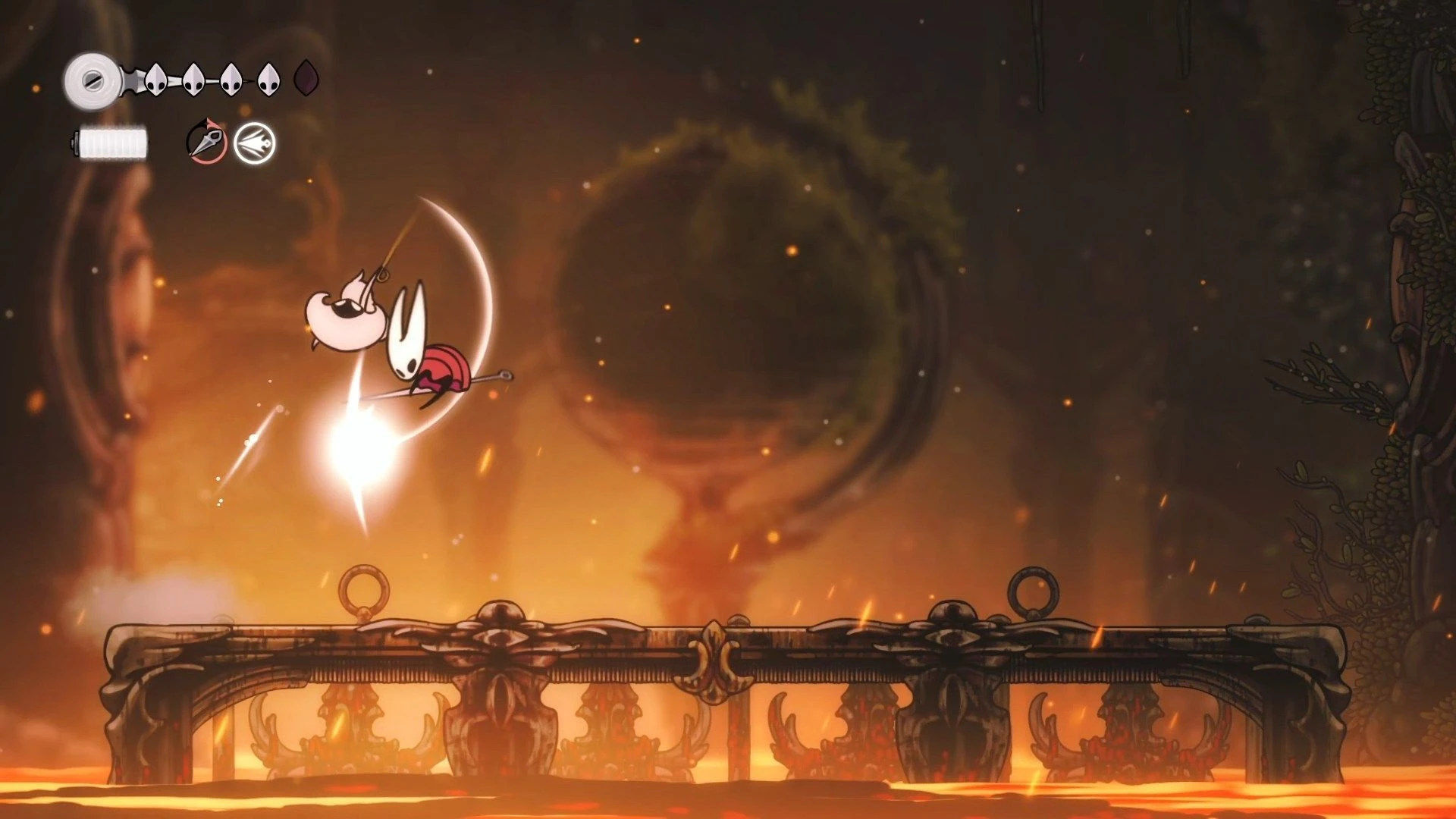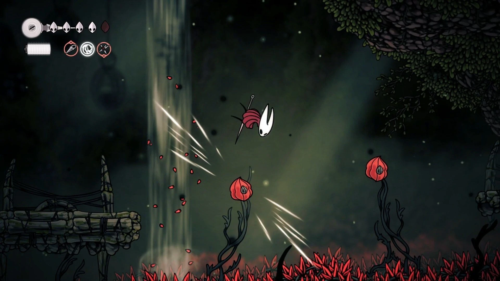 Переход от Рыцаря к Хорнет, как от Dark Souls к Bloodborne или Sekiro – игра на основе оригинального Hollow Knight приведет к поражению. Хорнет очень быстра, мгновенно перемещается между локациями и опасна и на земле, и в воздухе.
