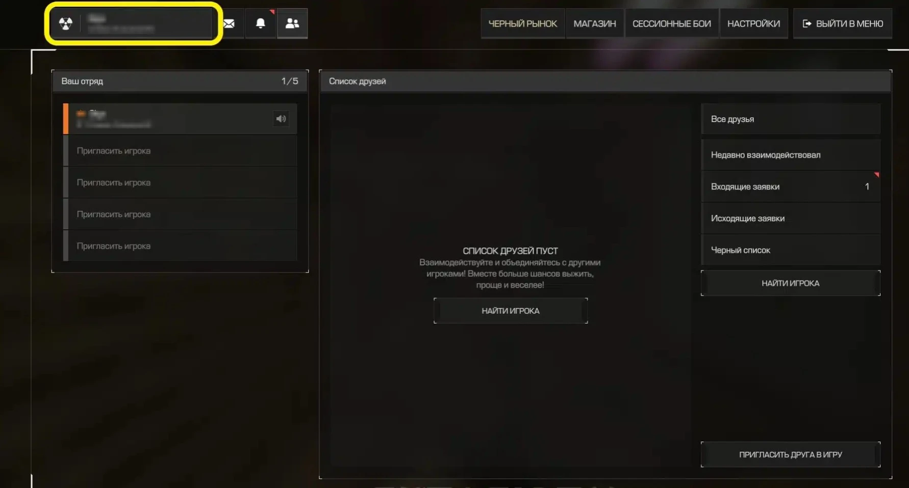 - В левом верхнем углу кликните левой кнопкой мыши по вашему имени, чтобы открыть игровой профиль.