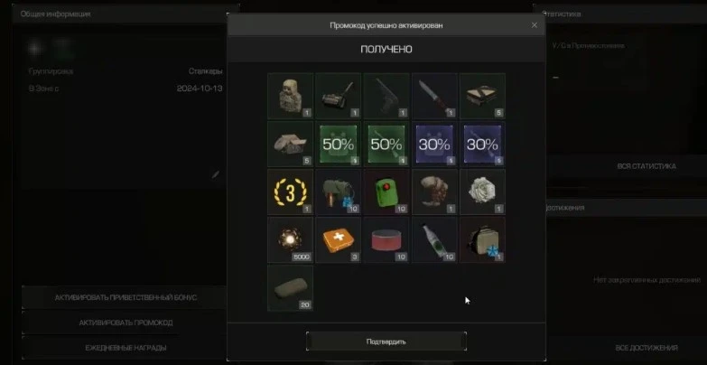 Промокоды вводятся непосредственно в игре, и награды начисляются мгновенно после активации. Все полученные призы перемещаются на ваш персональный склад, доступный только в безопасных зонах.
