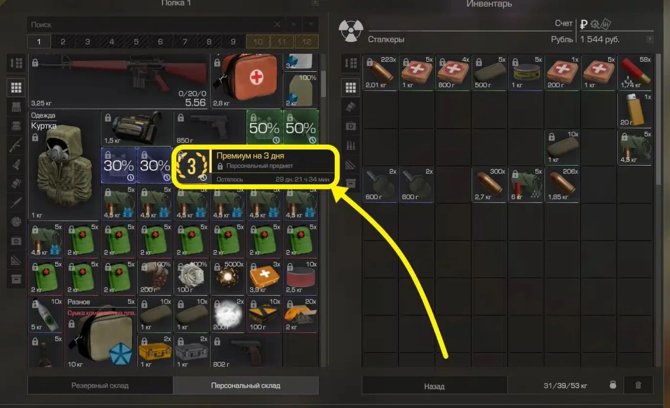Обратите внимание, что некоторые предметы, например, Премиум, имеют ограниченный срок действия. Успейте активировать Премиум, пока он еще находится на вашем складе.