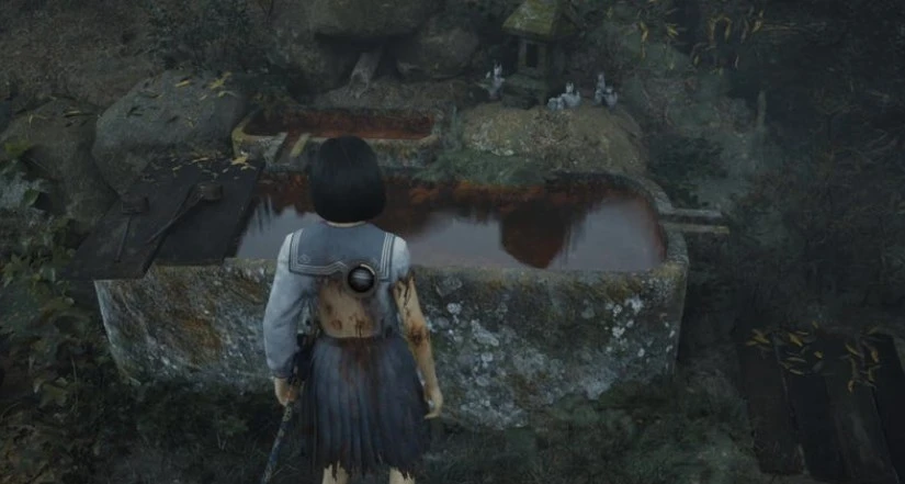 Эта дверь ведет в потайной сад снаружи Тёмного святилища. В саду отсутствуют враги, но можно найти несколько документов. Также имеется кабинет с видом на сад, в котором находится дощечка эма и ключевой предмет – лекарство Хотей-самы. Подбор этого предмета принесет достижение "Драгоценная собственность". В дневнике Хинако появится соответствующая вкладка.