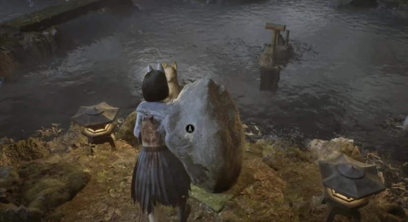 Второй колокол находится на небольшом островке рядом с каменной плитой с инструкциями. Добраться до него можно, осторожно переходя по выступающим камням. Символ воды воплощает очищение и течение, вводя второй элемент в последовательность, необходимую для гармоничного перехода.